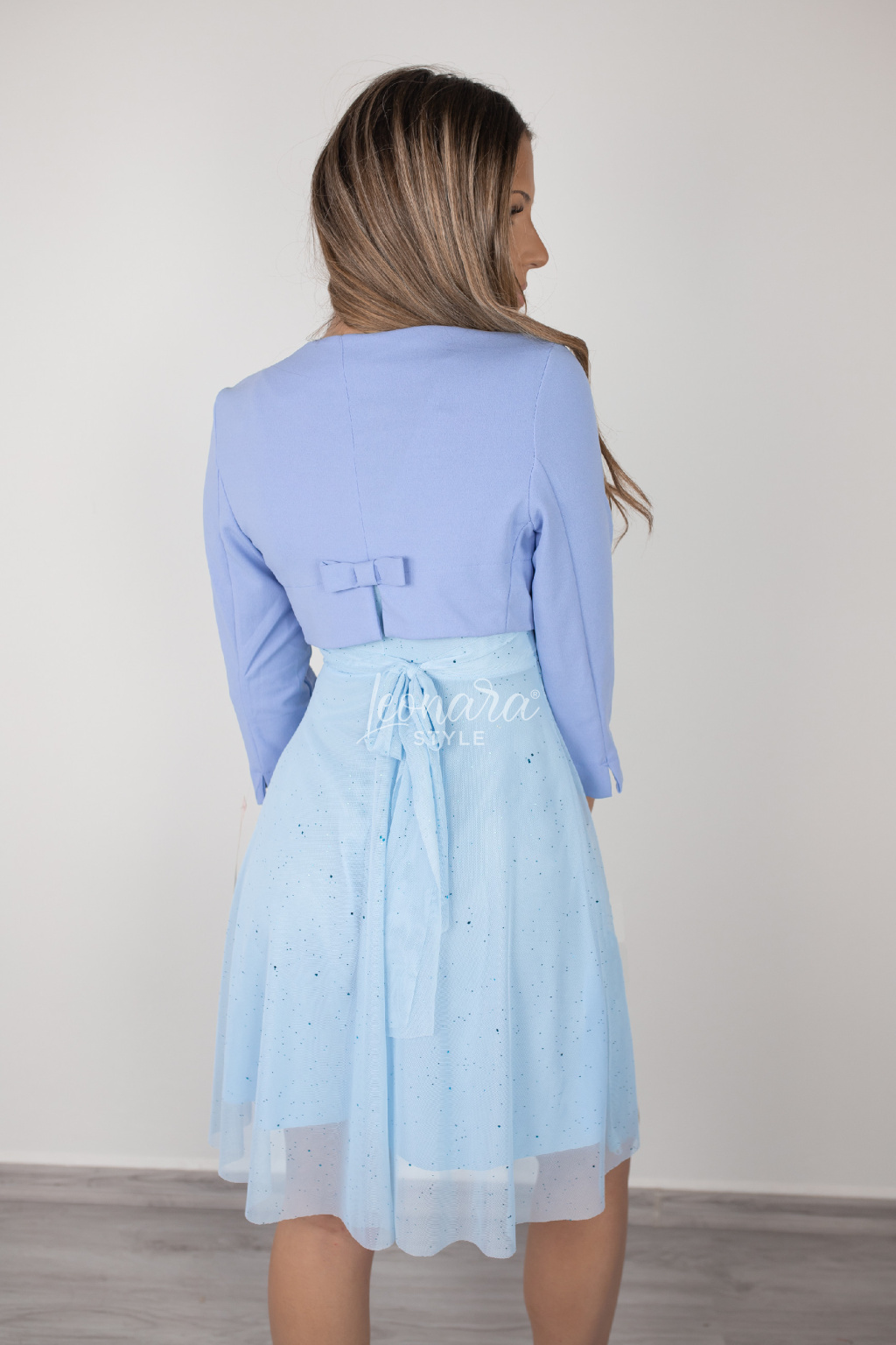Lehké bolerko z velmi příjemného materiálu, které je ideální jako stylový doplněk k vašemu outfitu. Má tříčtvrteční rukávy a je navrženo pouze na přehození bez zapínání. Skvěle se hodí k šatům, topům i tílkům, když potřebujete jemně zakrýt ramena nebo doplnit outfit o elegantní vrstvu. Využijete ho do práce, na společenské události i během chladnějších letních večerů.