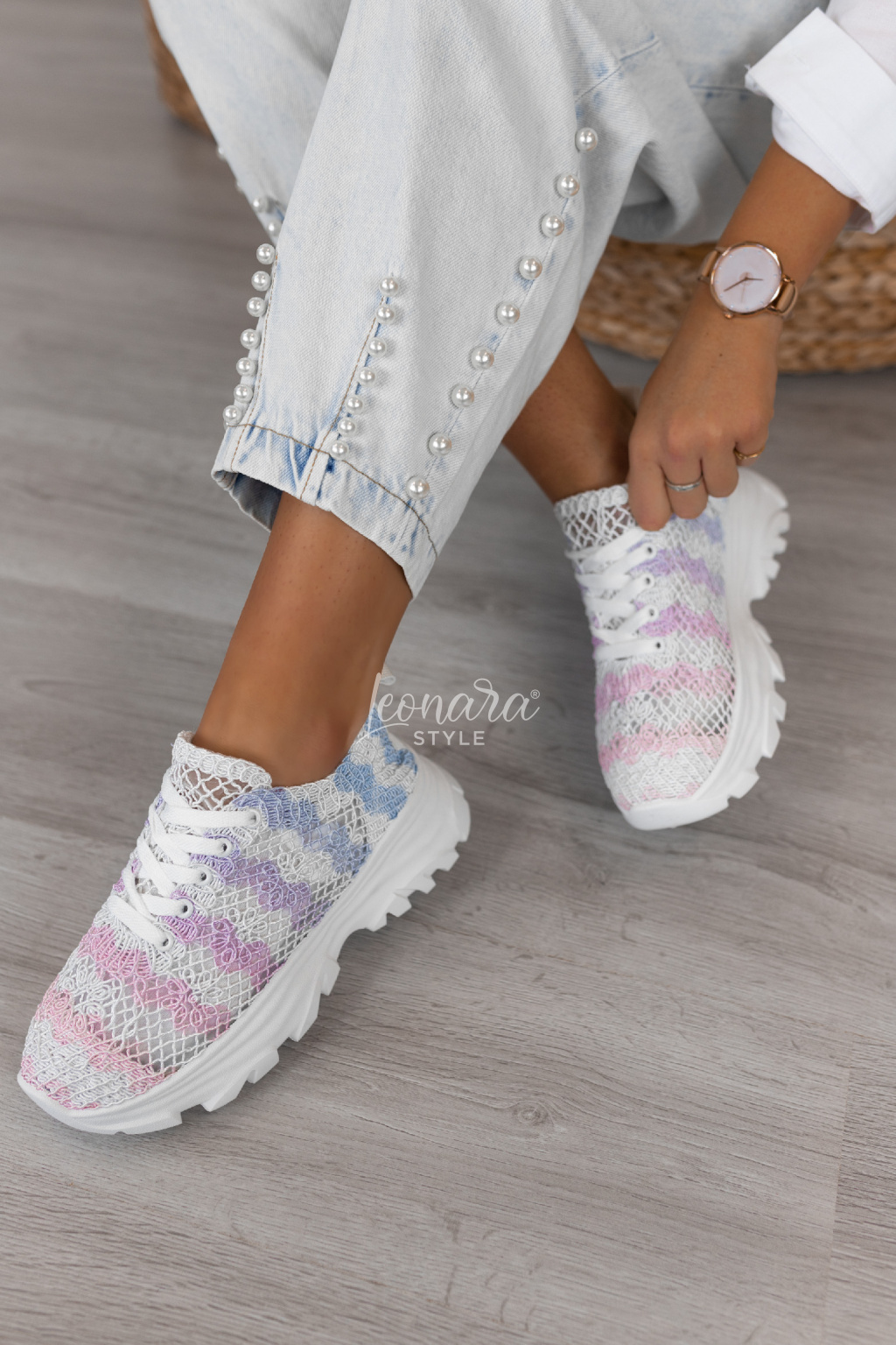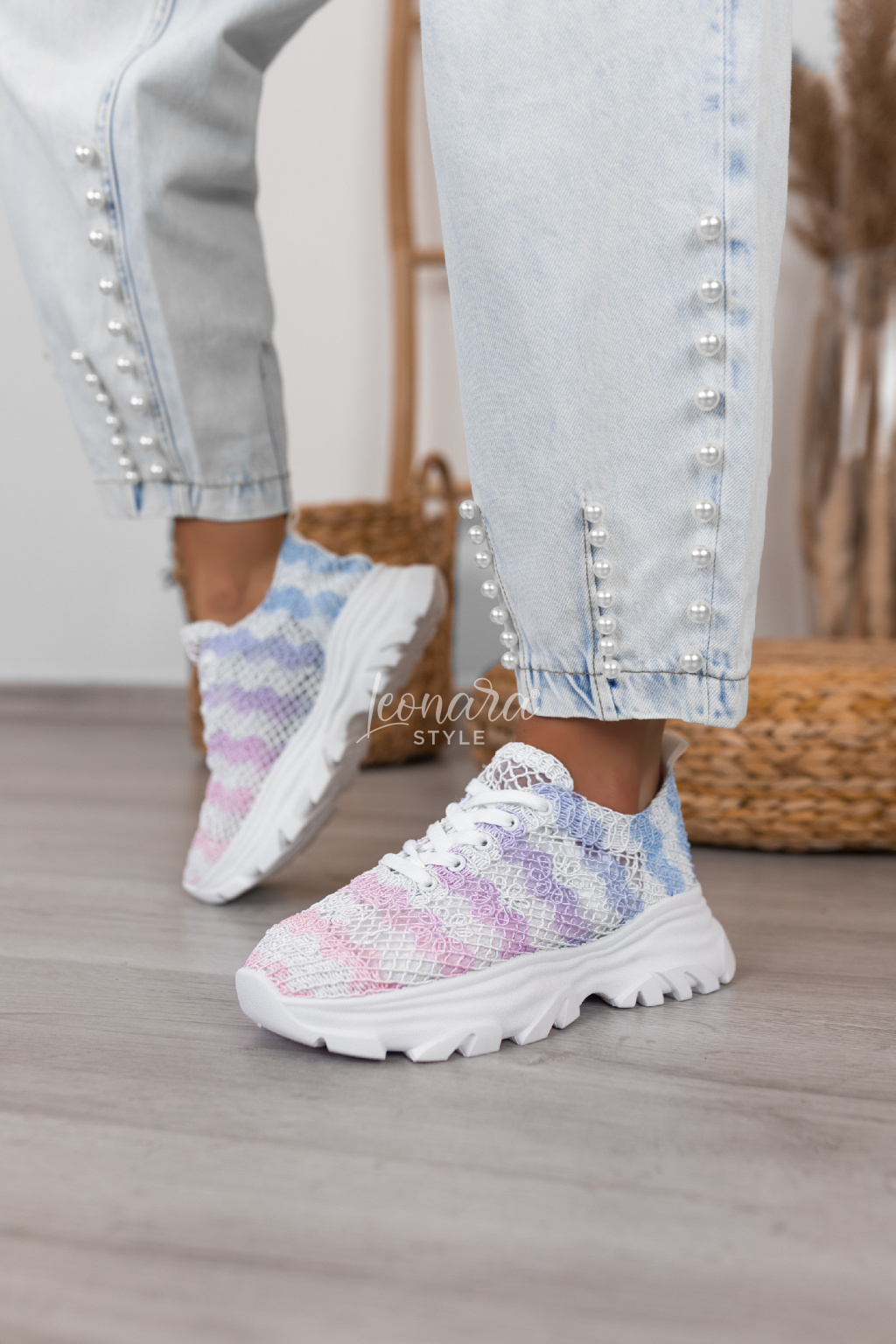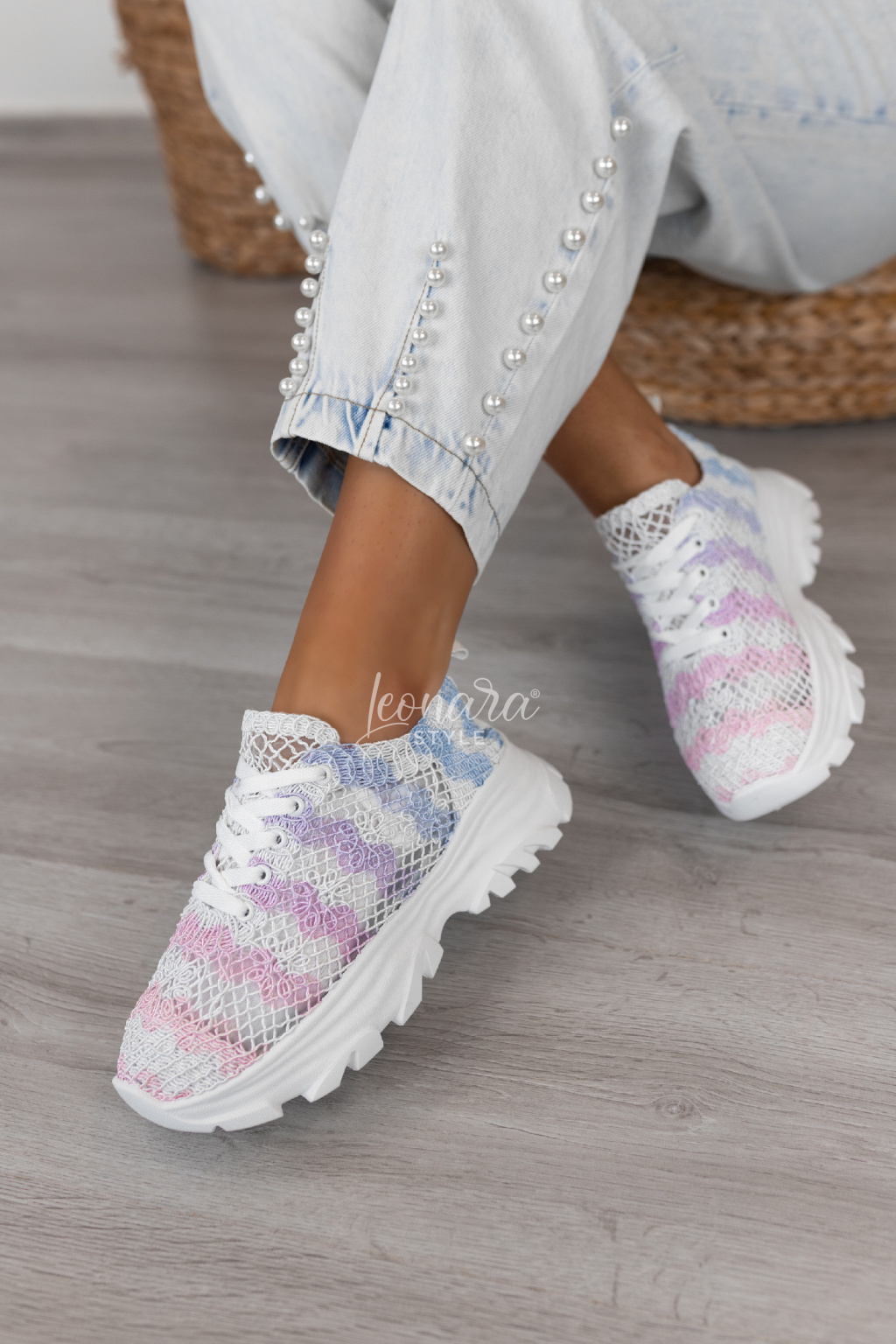 Krajkové tenisky jsou stylovou volbou na jaro. Krajka na průhledné látce působí jemně a hezky vynikne na noze. Mají vyšší podrážku pro pohodlí i moderní vzhled a klasické šněrování na tkaničky. Skvěle se hodí k šatům, sukním i džínám a jsou ideální na běžné nošení i procházky městem.