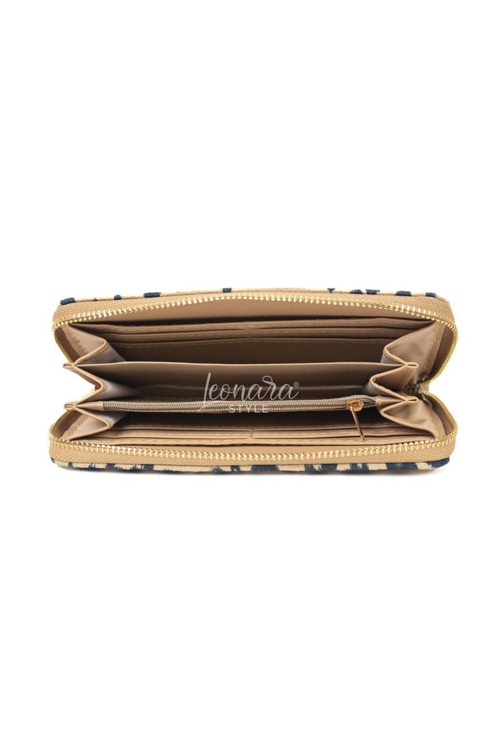Elegantní semišová peněženka s výrazným leopardím vzorem a luxusními zlatými detaily. Stylový doplněk, který zaujme na první pohled a zároveň nabízí praktické vnitřní uspořádání. Obsahuje kapsy na bankovky, přihrádku na mince a dostatek prostoru pro mnoho karet. Ideální kombinace elegance, originality a funkčnosti pro každodenní nošení.