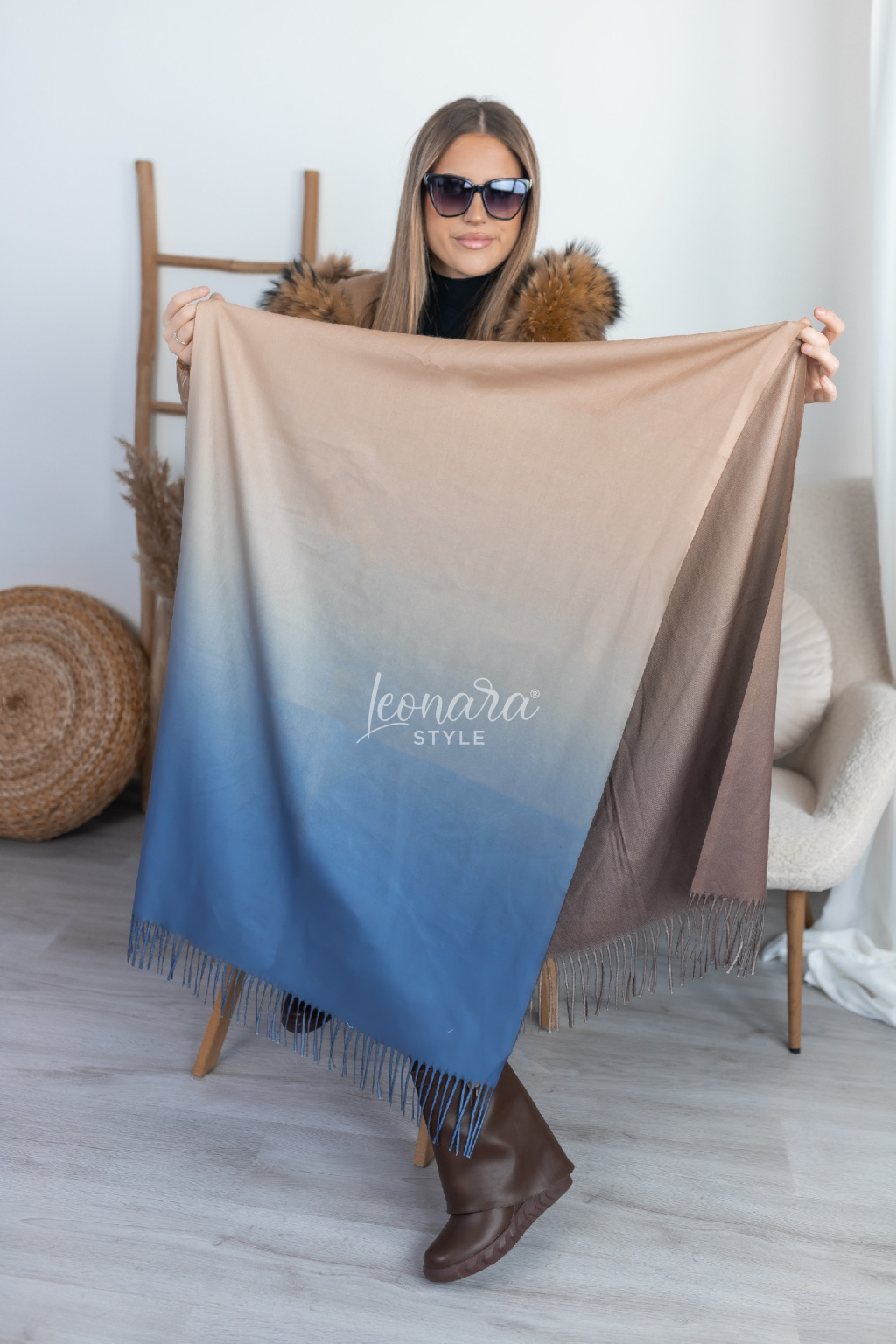 Béžovo modrá ombré šála HOLLY