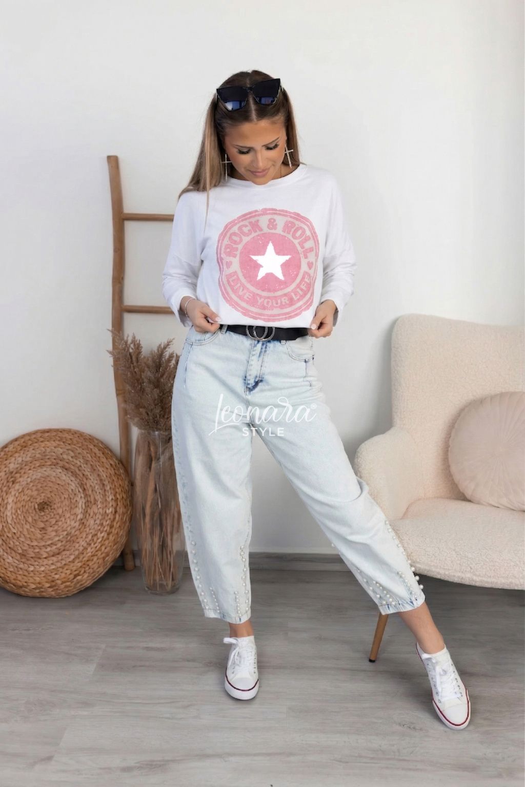 Tato tenká mikina má pohodlný, rovný střih a je vyrobená z příjemného materiálu vhodného pro celodenní nošení. Na přední straně je výrazný potisk s motivem hvězdy a nápisem, který dodává mikině moderní vzhled. Mikina má lehce netopýří střih. Díky lehkému provedení je ideální na přechodné období i na vrstvení. Mikina se hodí pro běžné nošení, volný čas i ležérní městské outfity.