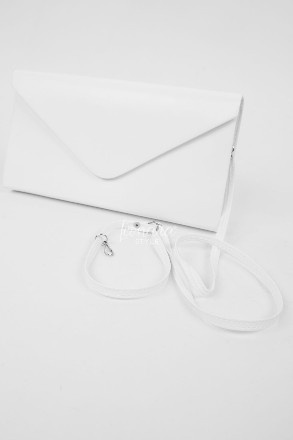 Velké bílé psaníčko s matným povrchem zaujme čistým a symetrickým designem. Praktické zapínání na magnetický druk zajišťuje pohodlné a bezpečné uzavření. Odepínací řemínek umožňuje nosit psaníčko elegantně v ruce nebo pohodlně přes rameno. Uvnitř se nachází jedna kapsa na drobnosti. Tento stylový doplněk skvěle podtrhne váš outfit na plesy, svatby i další slavnostní příležitosti.