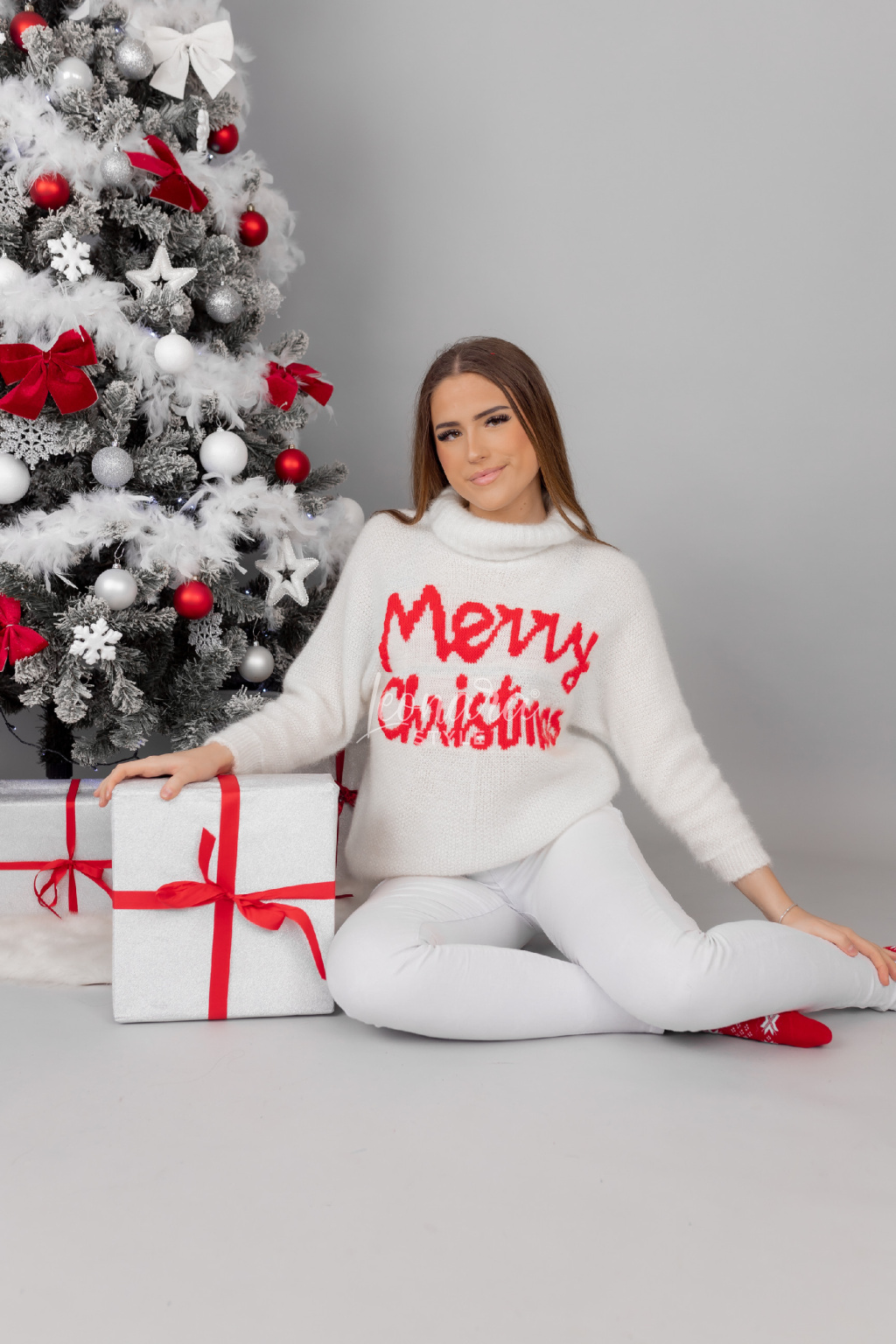 Tento huňatý svetr je perfektní volbou pro vánoční období! Má pohodlný rolák, který vás udrží v teple během chladných dní, a je vyroben z měkkého a příjemného materiálu, který je ideální pro celodenní nošení. Na hrudníku se nachází veselý nápis "Merry Christmas", který okamžitě navodí sváteční atmosféru. Díky jednoduchému, ale výstižnému designu se hodí na vánoční večírky, vánoční oslavy i běžné dny plné zimní pohody. Svetr je dostupný v několika barevných provedeních, aby vyhovoval vašemu stylu. Dopřejte si nejen krásný, ale i funkční doplněk do svého vánočního šatníku!