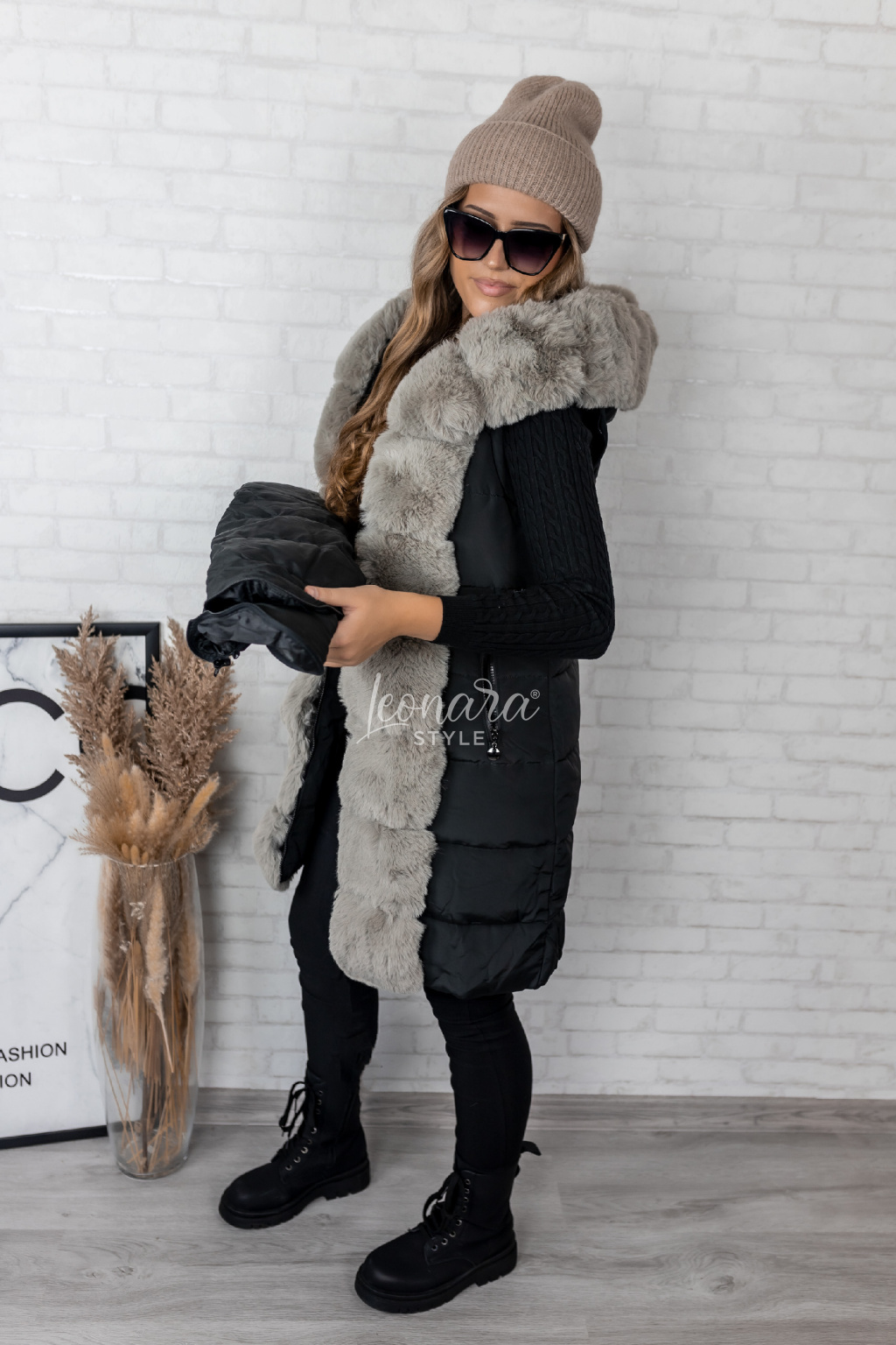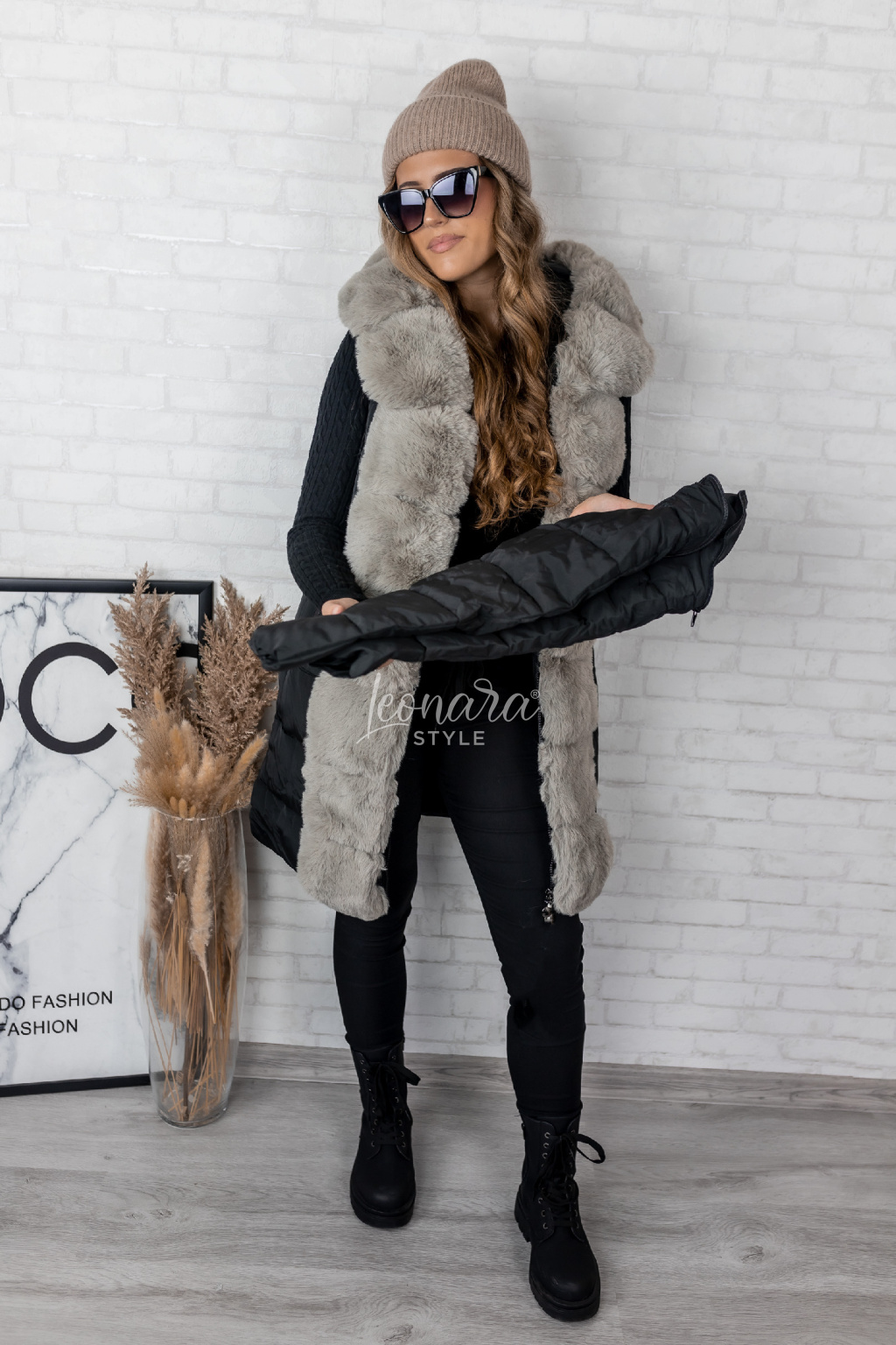 Stylová zimní bunda s měkkým kožíškem, který lze odepnout pomocí knoflíků. Rukávy jsou na zip, takže po jejich odepnutí snadno vytvoříte elegantní vestu. Bunda má napevno všitou kapuci a praktické kapsy, které zajišťují pohodlí i funkčnost v chladném počasí. Díky promyšlenému střihu krásně sedí na postavě a udrží vás v teple i během mrazivých dnů. Kombinace prošívání a hebkého kožíšku dodává celku luxusní vzhled, který se hodí jak do města, tak na volný čas. Je delší, hezky zakryje zadeček. Bunda je prošívaná.