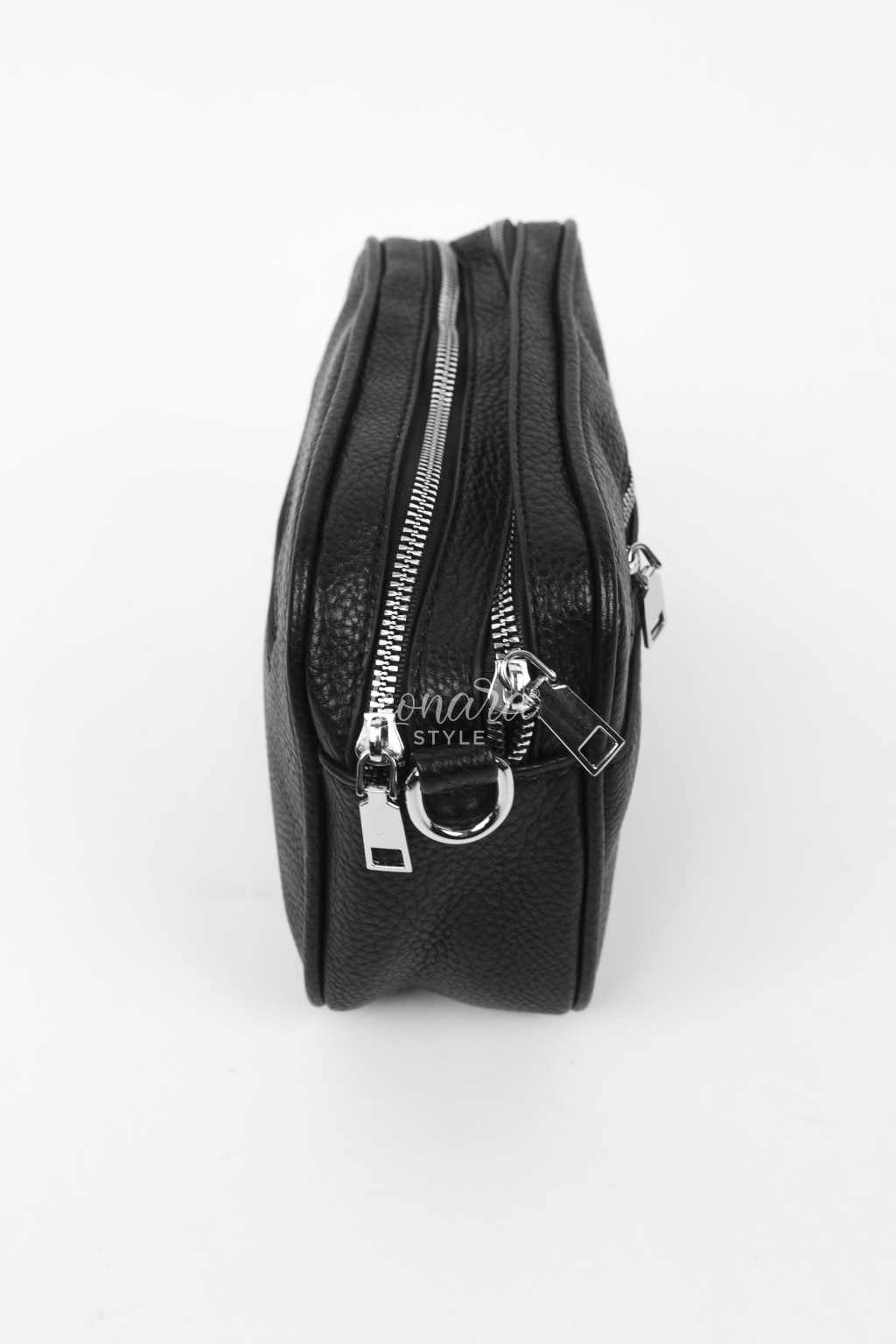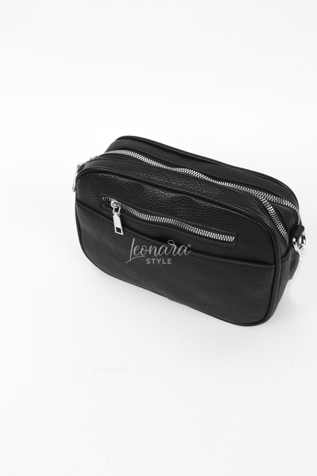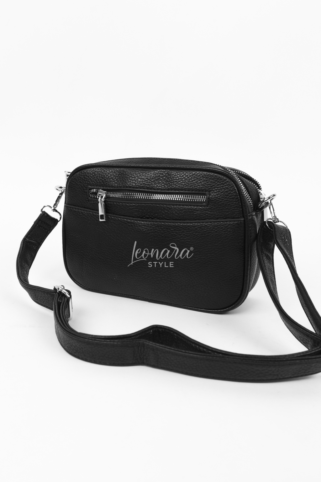 Stylová crossbody kabelka z kvalitního koženkového materiálu v moderním černém provedení. Minimalistický design doplňují výrazné zipy a kovové detaily. Díky nastavitelnému popruhu ji můžete pohodlně nosit přes rameno i jako crossbody. Ideální velikost na mobil, peněženku, klíče a další nezbytnosti. Praktický a stylový doplněk pro každodenní nošení.