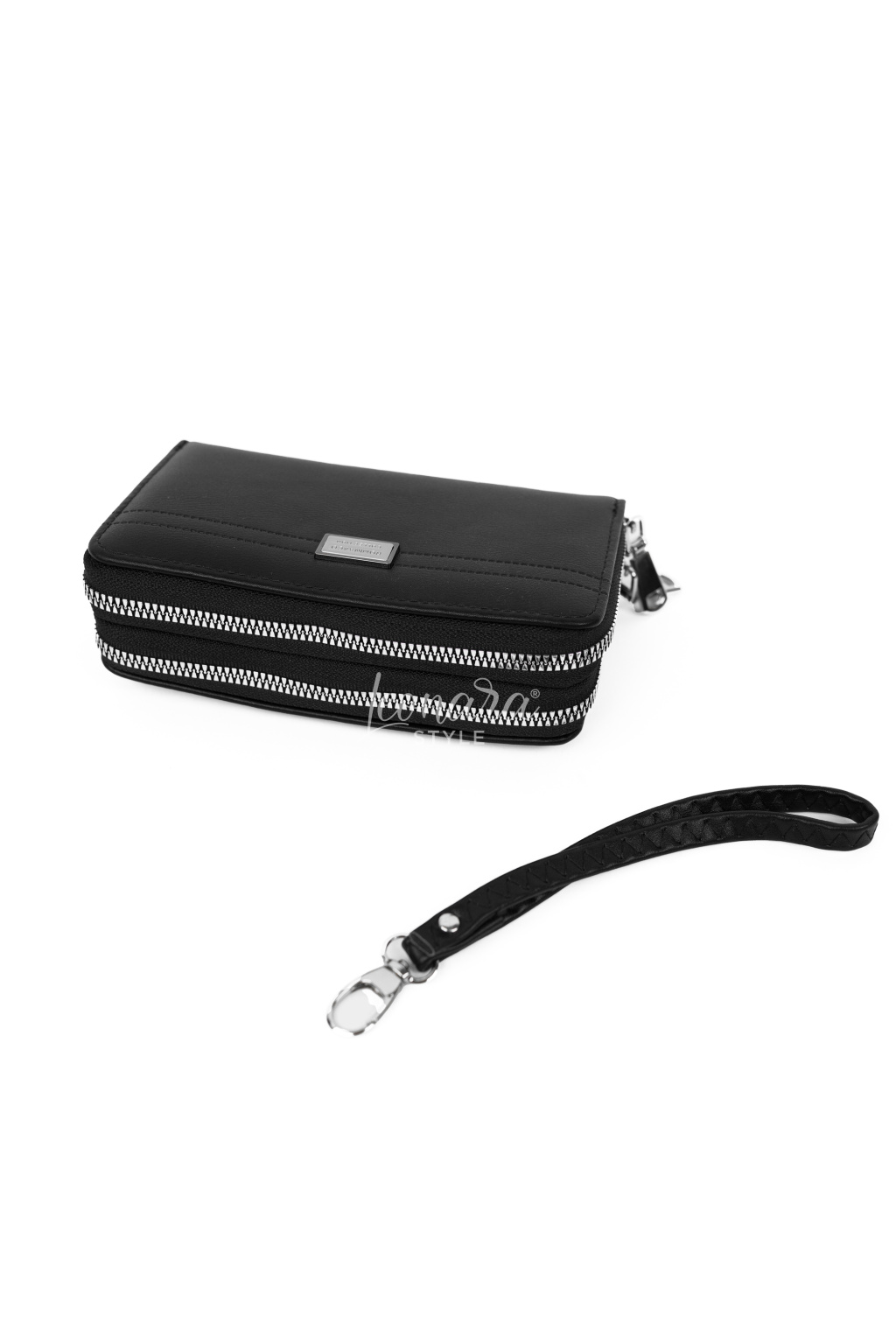Elegantní koženková dvojitá peněženka se stříbrnými detaily je praktickým a stylovým doplňkem pro každý den. Díky promyšlenému vnitřnímu uspořádání nabízí dostatek prostoru na hotovost, karty i drobnosti. Součástí je odnímatelné koženkové poutko, díky kterému můžete peněženku nosit i samostatně v ruce. První část peněženky je rozdělena na dvě kapsy a jednu kapsu na mince se zapínáním na zip. Druhá část má dvě kapsy, po jejichž bocích se nachází přihrádky na karty, takže budete mít vše přehledně uspořádané a po ruce.