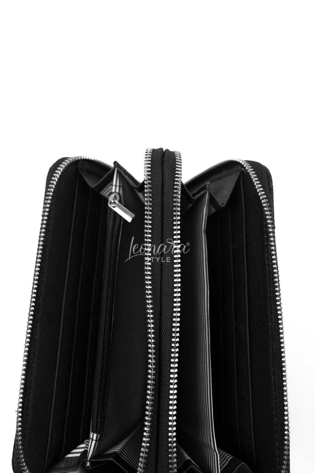 Vnitřní uspořádání: 4 kapsy na bankovky, 1 uzavíratelná kapsa na zip na drobné mince, 8 kapes na karty