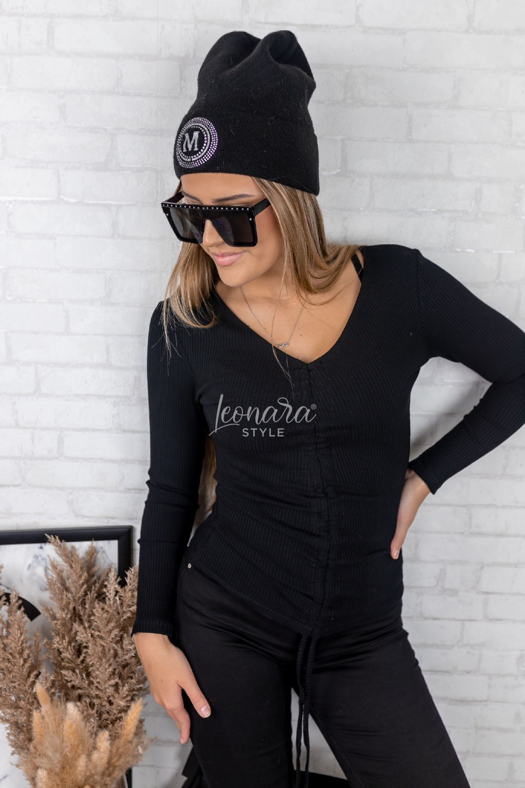Tato žebrovaná halenka zaujme svým originálním stahováním v oblasti hrudníku, díky kterému si snadno upravíte vzhled podle svých představ. Má jemný výstřih do V, který působí ženským a elegantním dojmem. Pružný materiál se příjemně přizpůsobí postavě a zajistí pohodlí po celý den. Halenka se skvěle hodí jak k ležérním outfitům, tak i k elegantnějším kombinacím na večer nebo do města.