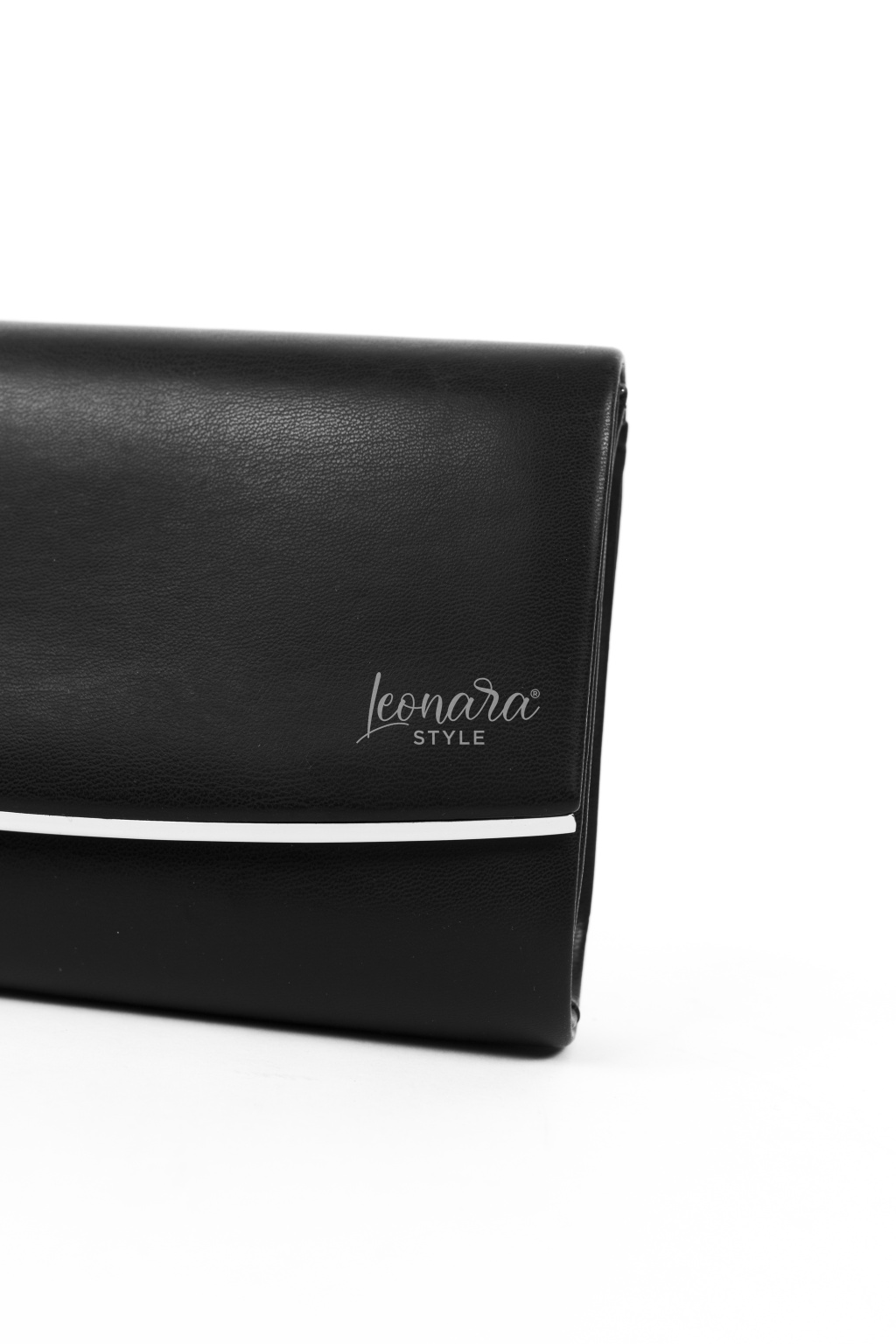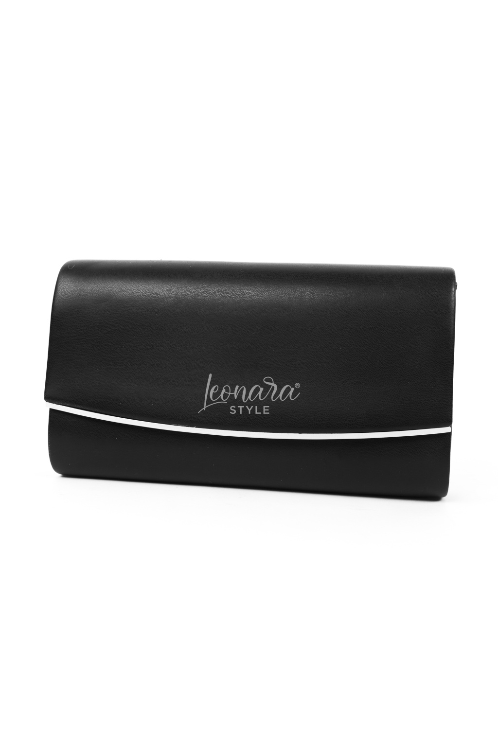 Černé psaníčko zaujme symetrickým tvarem, podélně zdobeným stříbrným detailem. Magnetický druk zajistí pohodlné a bezpečné zapínání, zatímco odepínací řetízek ze stejného materiálu umožňuje nosit psaníčko v ruce nebo elegantně přes rameno. Uvnitř se nachází praktická kapsa na drobnosti. Tento stylový doplněk skvěle doplní váš outfit na plesy, svatby i jiné slavnostní příležitosti.