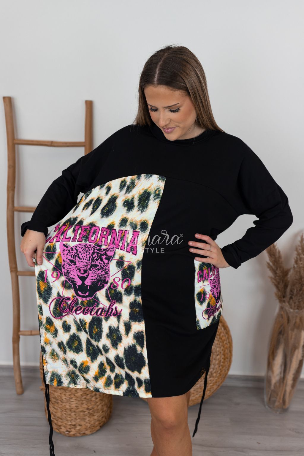 Stylové a mimořádně pohodlné maxi mikino-šaty, které si zamilujete pro jejich volný, oversized střih. Jsou jako stvořené pro větší velikosti, kterým dodají moderní, ležérní vzhled a zakryjí případné nedokonalosti. Dlouhý rukáv poskytuje teplo, zatímco výrazný nápis CALIFORNIA na předním díle dodává modelu šmrnc. Praktická kapsa a rafinované stažení po stranách dotvářejí tento stylový kousek.