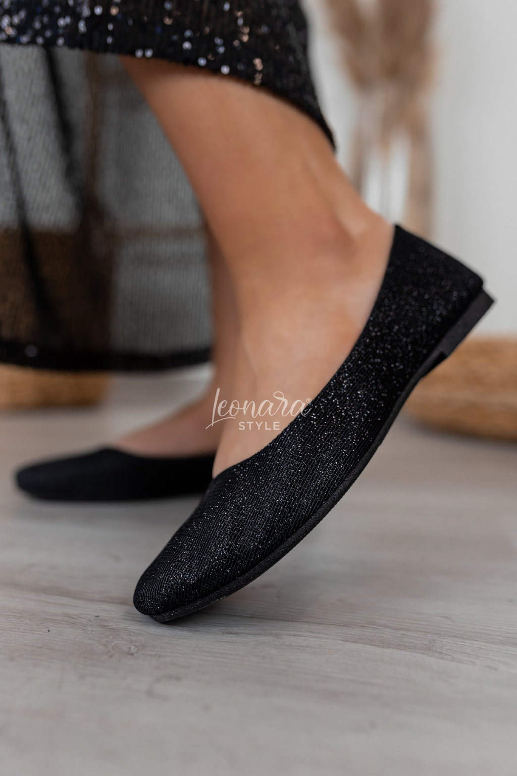 Elegantní černé baleríny s třpytivým efektem kombinují pohodlí a styl. Díky lehké konstrukci jsou vhodné pro každodenní nošení, například do práce nebo na procházky, a zároveň díky třpytu doplní i slavnostnější outfit při večerních událostech či oslavách. Hodí se k šatům, sukni i elegantním kalhotám.