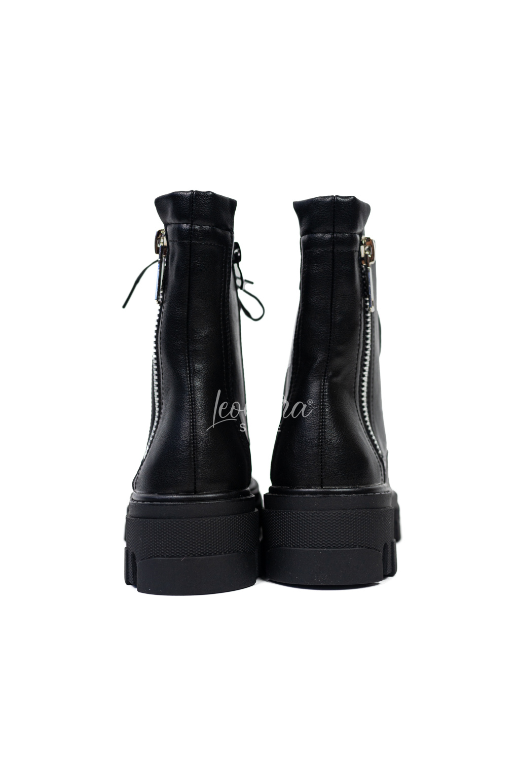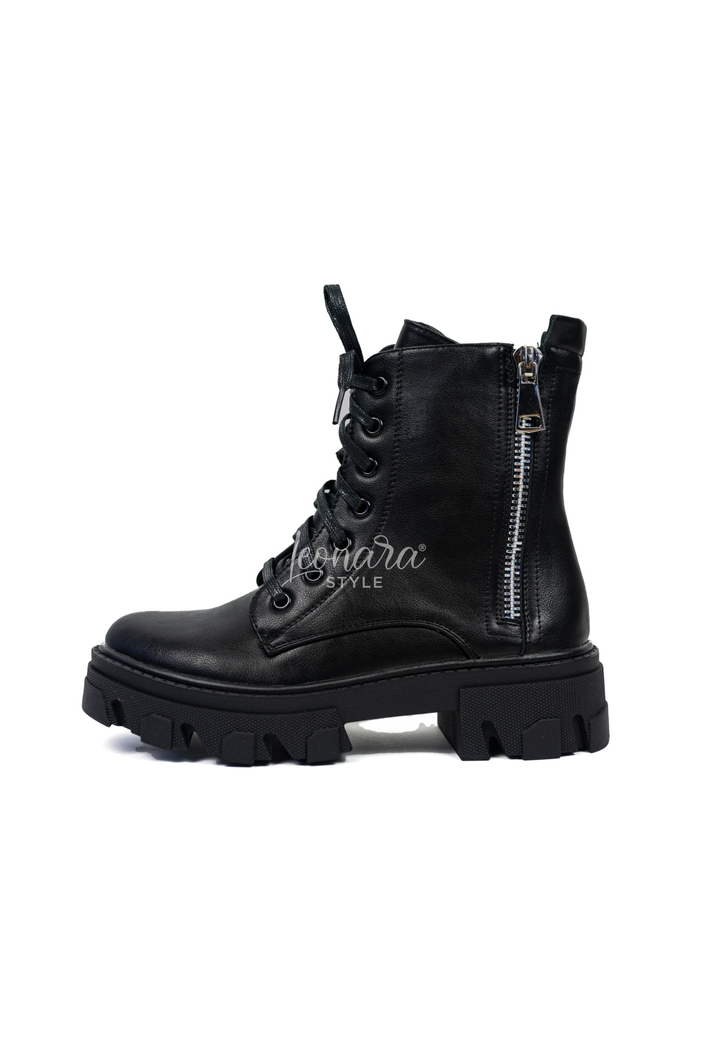 Moderní černé workery v nadkotníkové výšce, které kombinují styl, praktičnost a pohodlí. Vyrobené z kvalitní koženky, působí elegantně a snadno se udržují. Funkční zip na vnitřní straně umožňuje rychlé a pohodlné obouvání, zatímco vnější zip slouží jako stylový dekorační prvek.