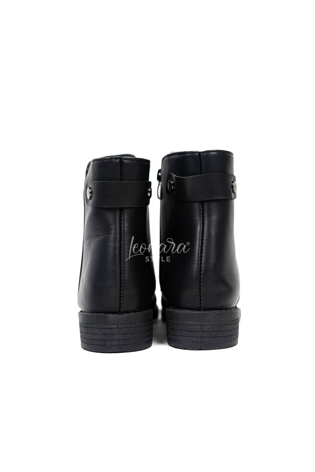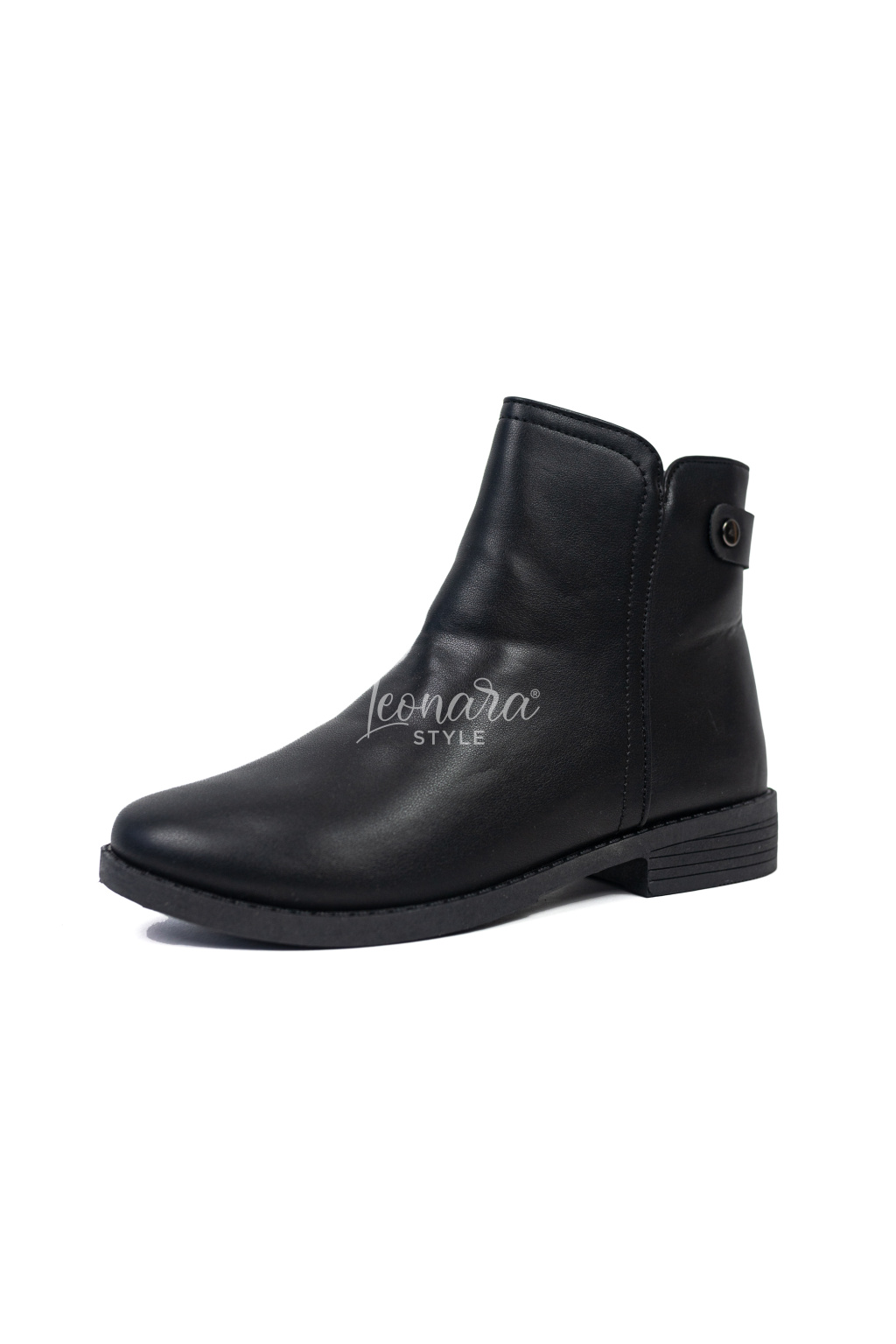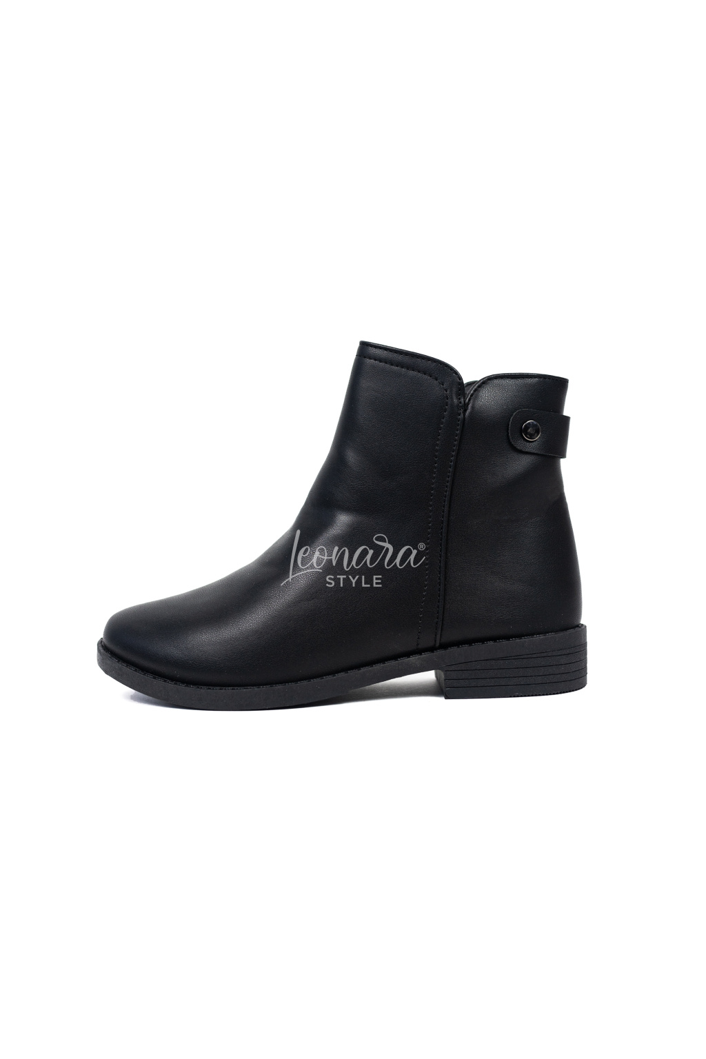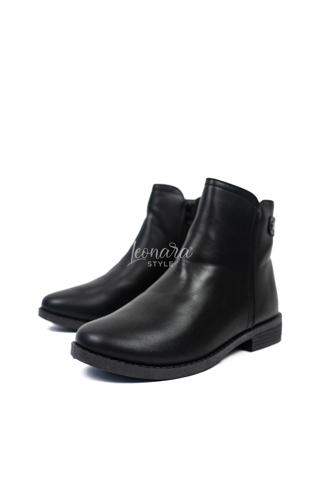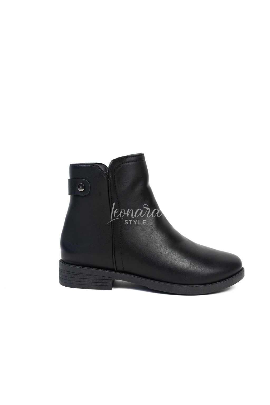 Stylové a univerzální kotníkové boty, které se hodí ke každodennímu nošení. Hladký černý povrch působí elegantně a snadno se kombinuje s jakýmkoliv outfitem. Nízký podpatek zajišťuje pohodlí při celodenním nošení a praktické zapínání na boční straně usnadňuje obouvání. Uvnitř boty jemný flís. Na zadní straně detail stříbrného cvočku.