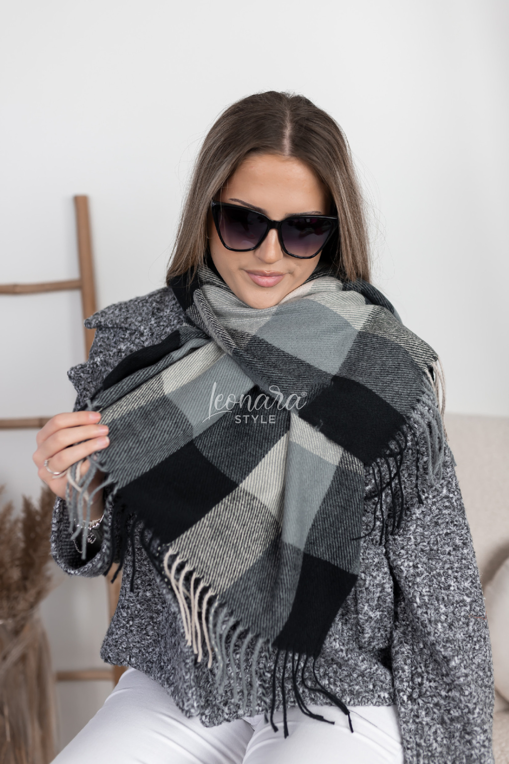 Elegantní kašmírová šála s klasickým kostkovaným vzorem v kombinaci černé, krémové a šedé barvy. Je mimořádně příjemná na nošení, hebká na dotek a díky podílu kašmíru krásně zahřeje. Nadčasový doplněk s jemnými třásněmi, který dodá šmrnc každému outfitu - jak ležérnímu, tak i elegantnímu.