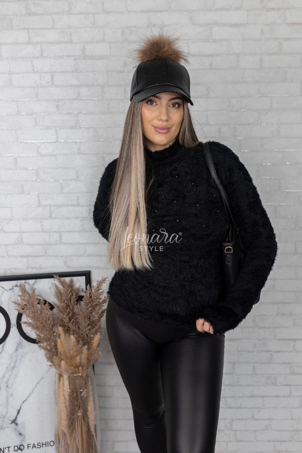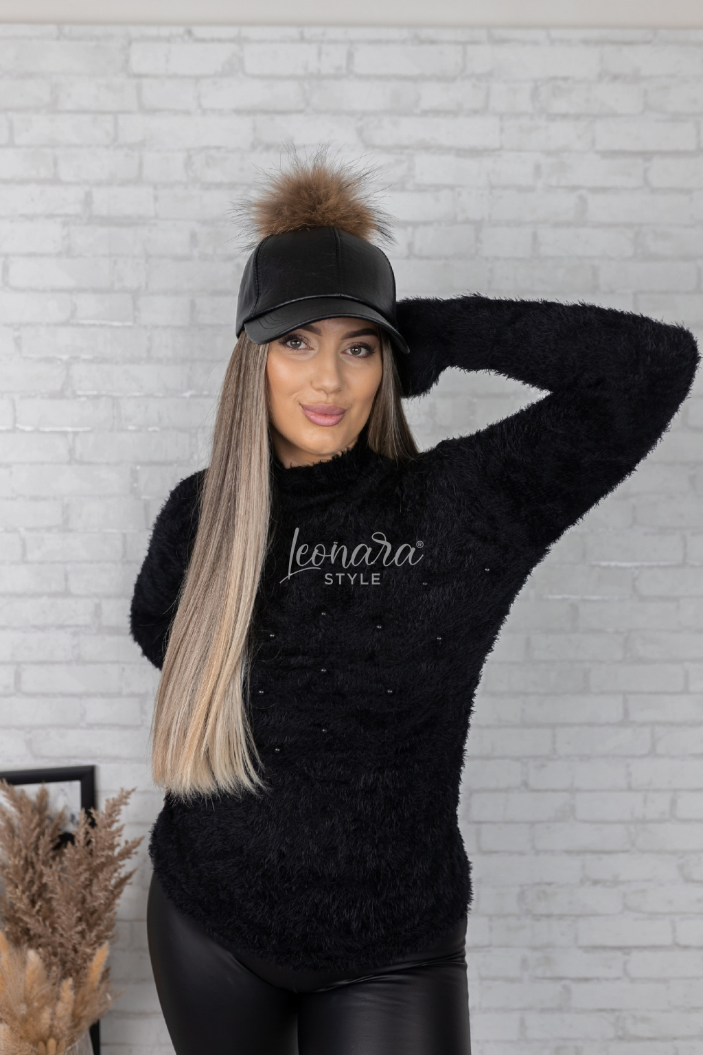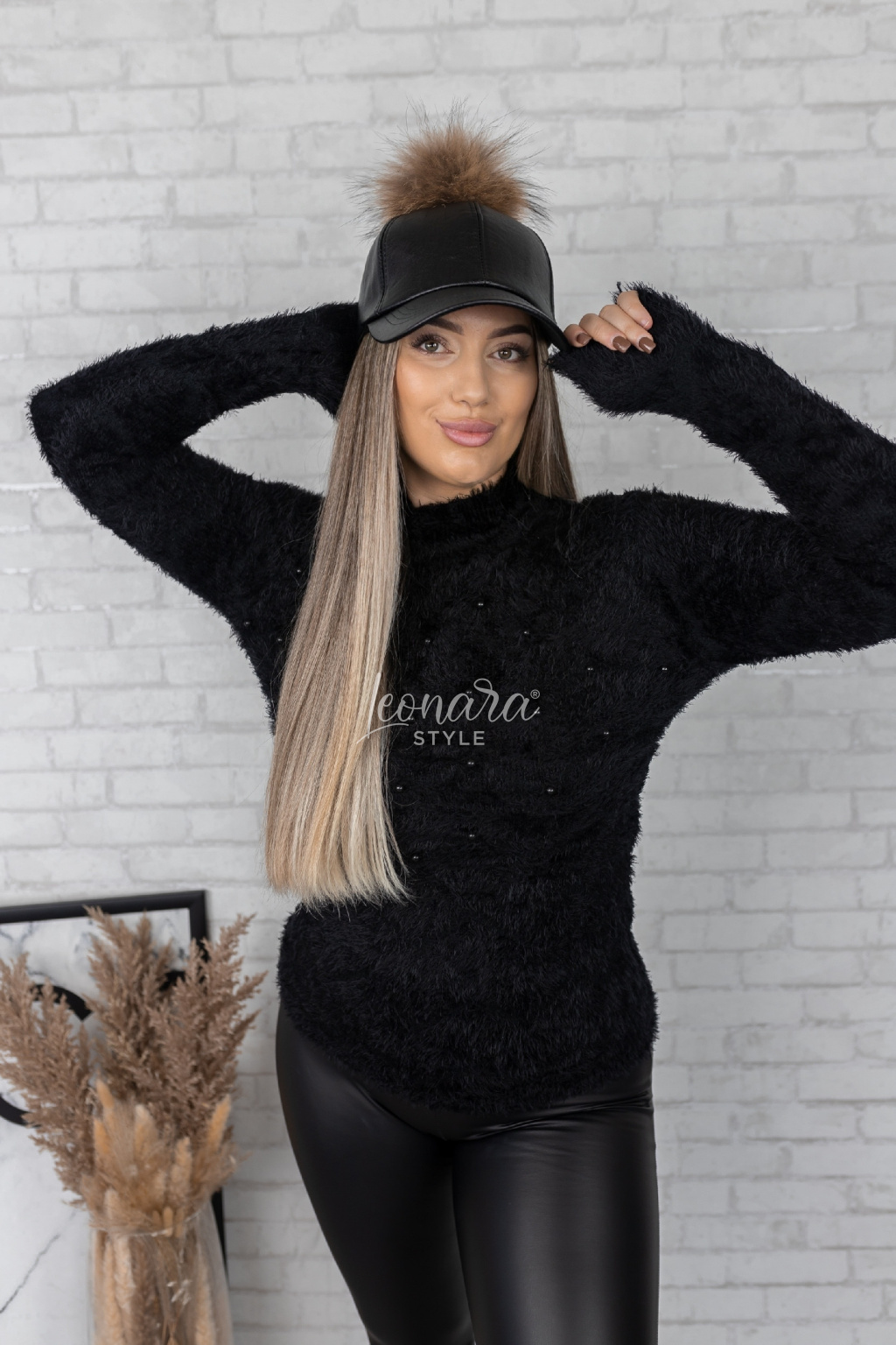 Černý huňatý svetřík s perličkami CORAL