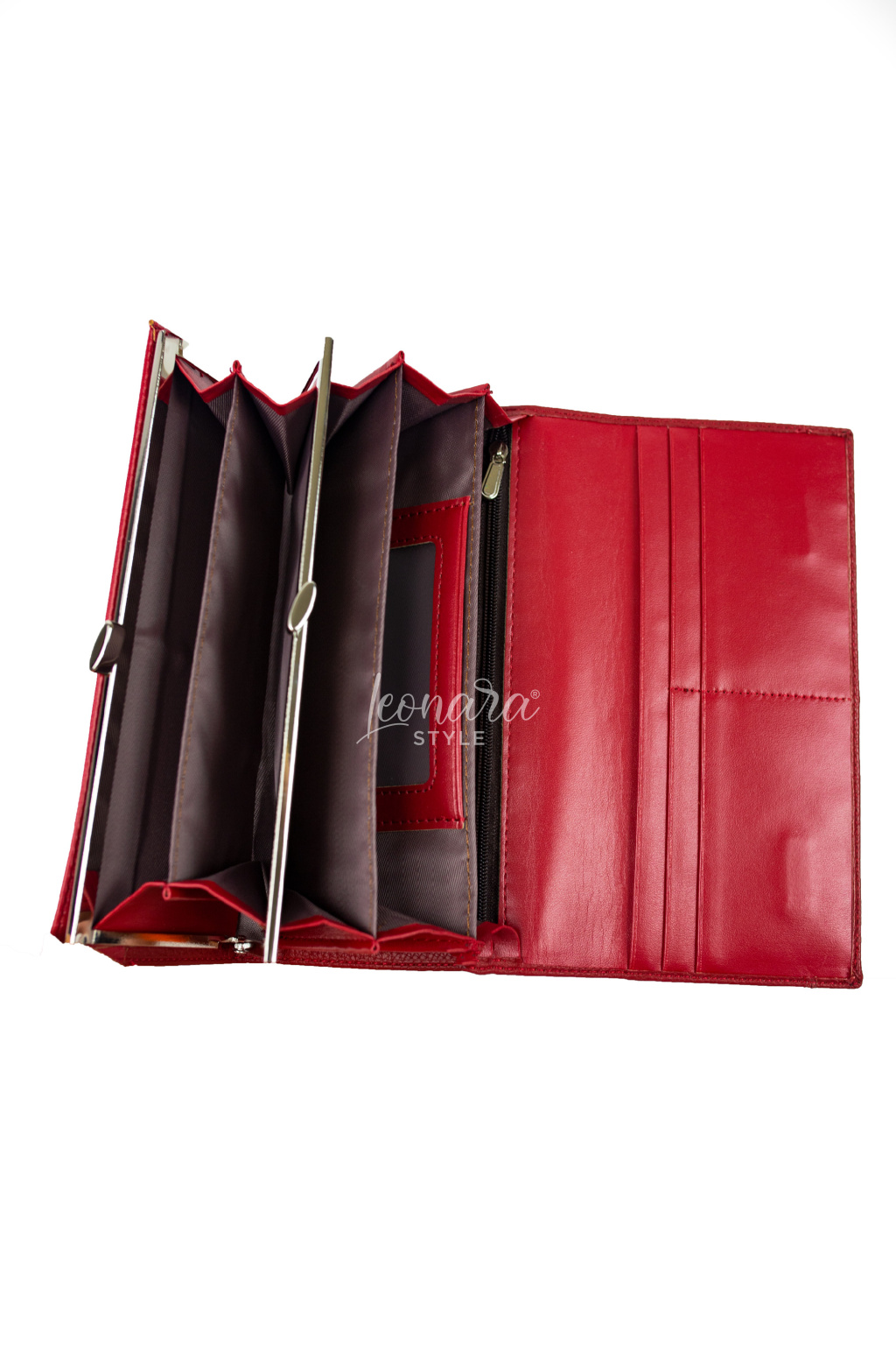 Vnitřní uspořádání : 3 kapsy na bankovky, 1 kapsu na zip, 1 kapsu na fotografii, přihrádku na mince a dostatek prostoru pro karty