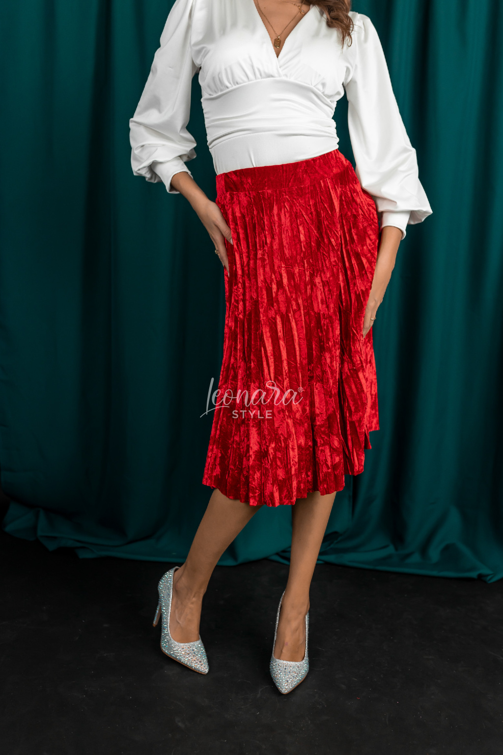 Tato plisovaná sukně zaujme svým semišovým povrchem, který dodává celkovému vzhledu jemnost a moderní styl. Je vyrobená z velmi lehkého a příjemného materiálu, který se pohodlně nosí. V pase je pružná guma, díky níž sukně dobře sedí a přizpůsobí se postavě. Sukně je vhodná pro formální příležitosti, pracovní prostředí i společenské akce. Snadno ji zkombinujete s elegantní halenkou nebo jednoduchým topem pro upravený každodenní outfit.