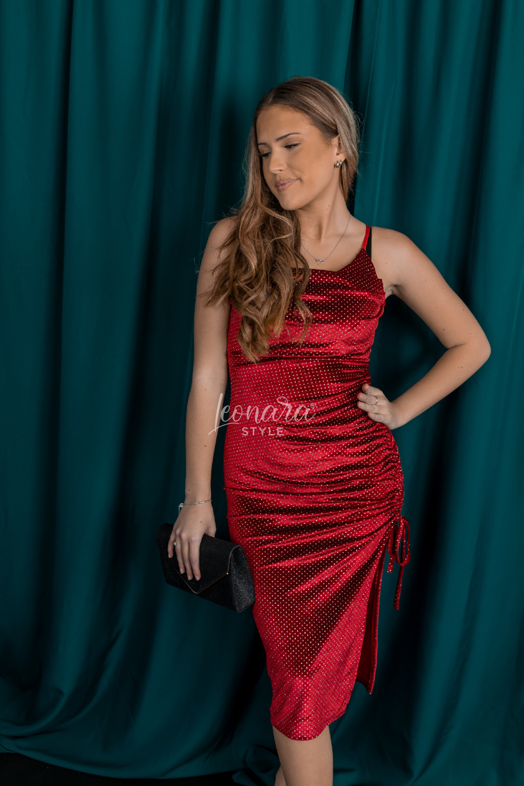 Elegantní společenské šaty z jemného semišového materiálu jsou mimořádně příjemné na dotek a díky nastavitelným ramínkům si je snadno přizpůsobíte své postavě. Šaty jsou po celé délce zdobené jemnými třpytkami, které dodávají luxusní vzhled. Na straně mají rozparek s praktickým šněrováním, díky kterému si můžete výšku rozparku upravit podle sebe. Jsou ideální volbou pro plesy, večírky, slavnostní události, galavečery i romantické večeře. Perfektně vyniknou samostatně i v kombinaci s elegantními doplňky.