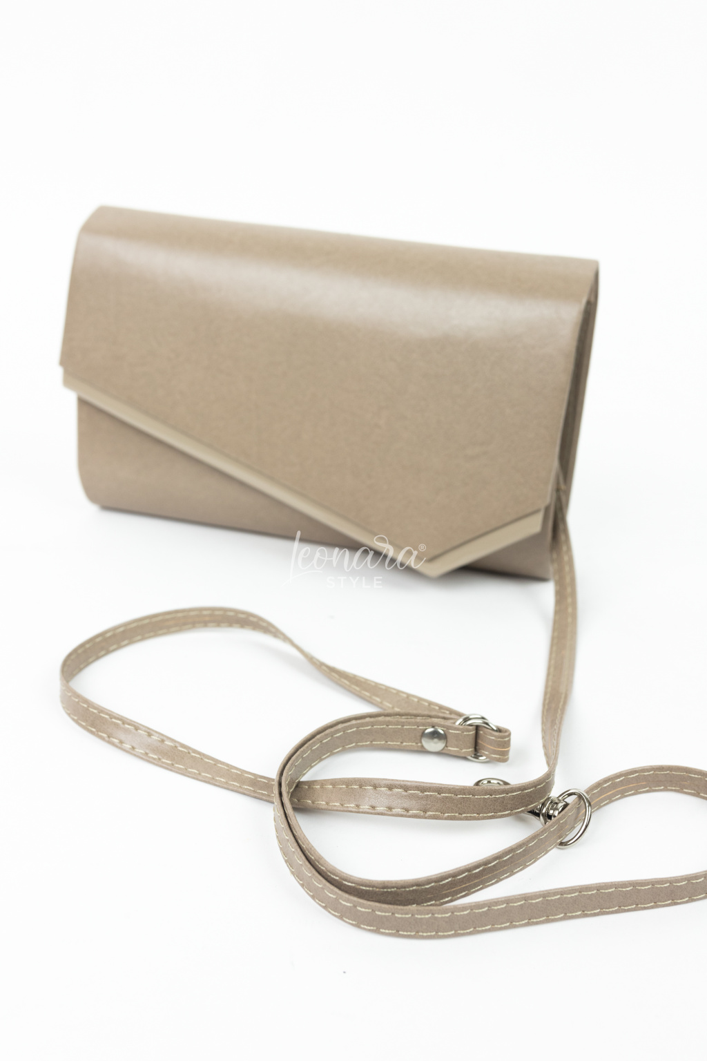 Hnědé psaníčko s lesklým povrchem zaujme moderním asymetrickým tvarem. Magnetický druk zajišťuje snadné a bezpečné zapínání, zatímco odepínací řemínek ze stejného materiálu umožňuje nosit jej elegantně v ruce nebo pohodlně přes rameno. Uvnitř najdete praktickou kapsu na drobnosti. Tento stylový doplněk skvěle doladí váš outfit na plesy, svatby i další slavnostní události.