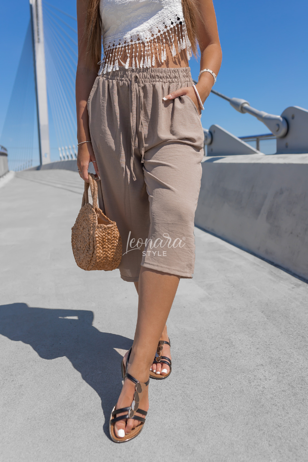 Hnědé široké tříčtvrteční kalhoty JASMINE