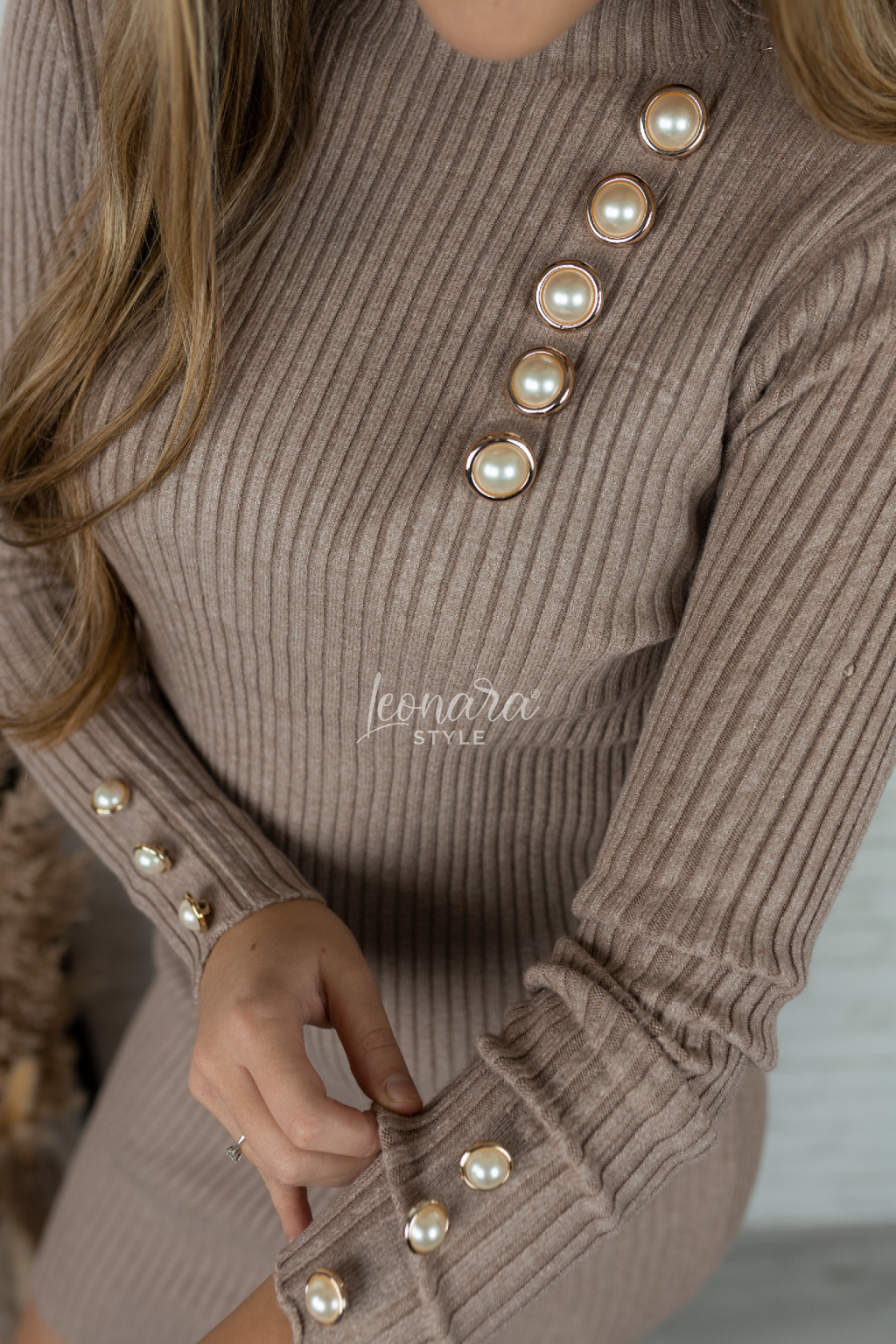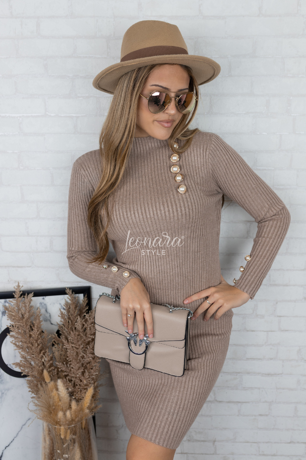 Tyto stylové žebrované šaty s dlouhým rukávem jsou ideální volbou pro chladnější dny. Jsou ušité z příjemného, elastického materiálu, který se krásně přizpůsobí postavě a zajistí maximální pohodlí po celý den. Přiléhavý střih elegantně zvýrazní ženskou siluetu, zatímco decentní výstřih ke krku působí jemně a vkusně. Výrazným detailem jsou perlové knoflíčky umístěné na rukávech a na levé straně hrudníku, které dodávají šatům nádech luxusu a originality. Díky jejich univerznímu designu se skvěle hodí jak pro běžné denní nošení, tak i na společenské události či oslavy.
