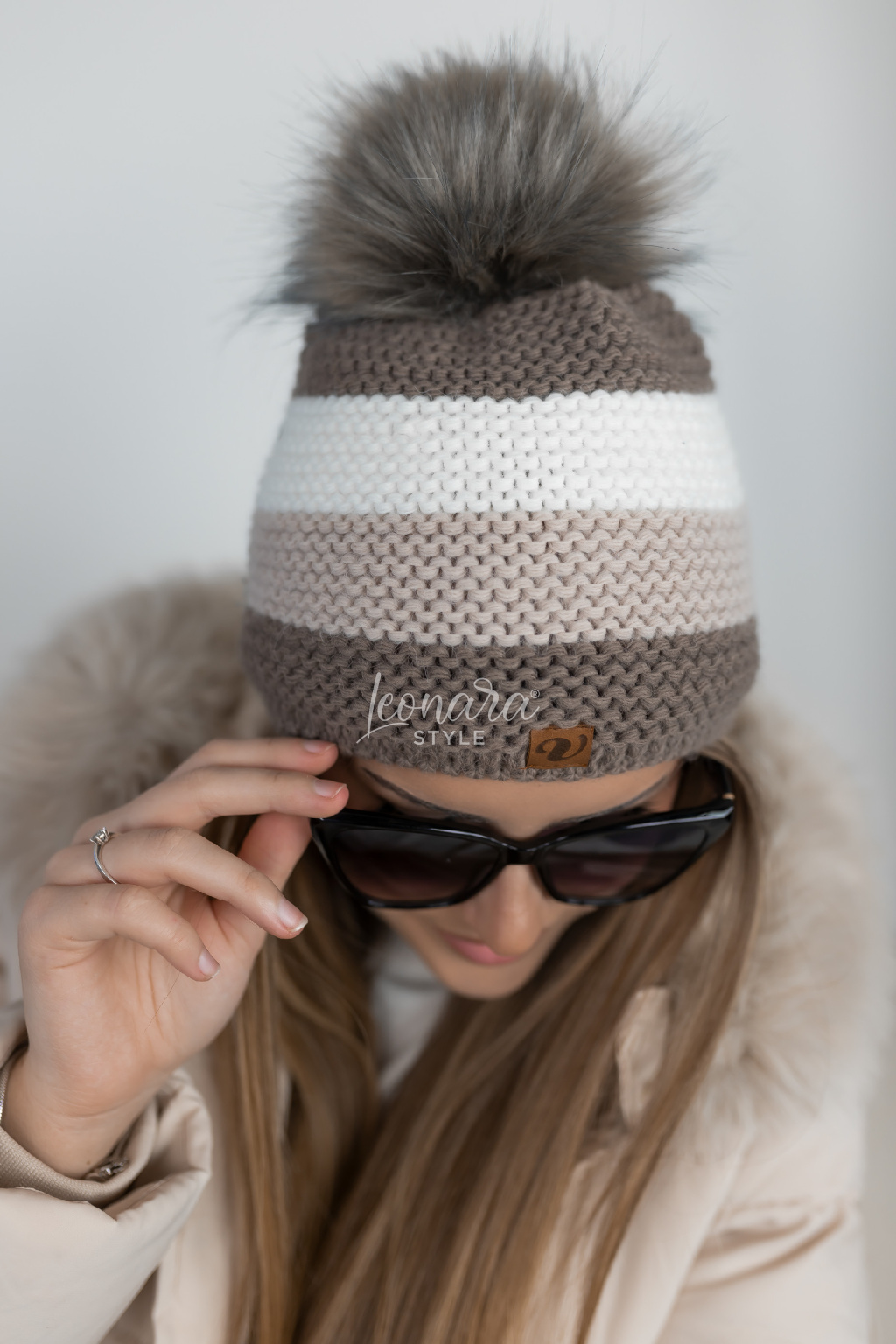 Hnědo-béžová pruhovaná čepice BRIGITA