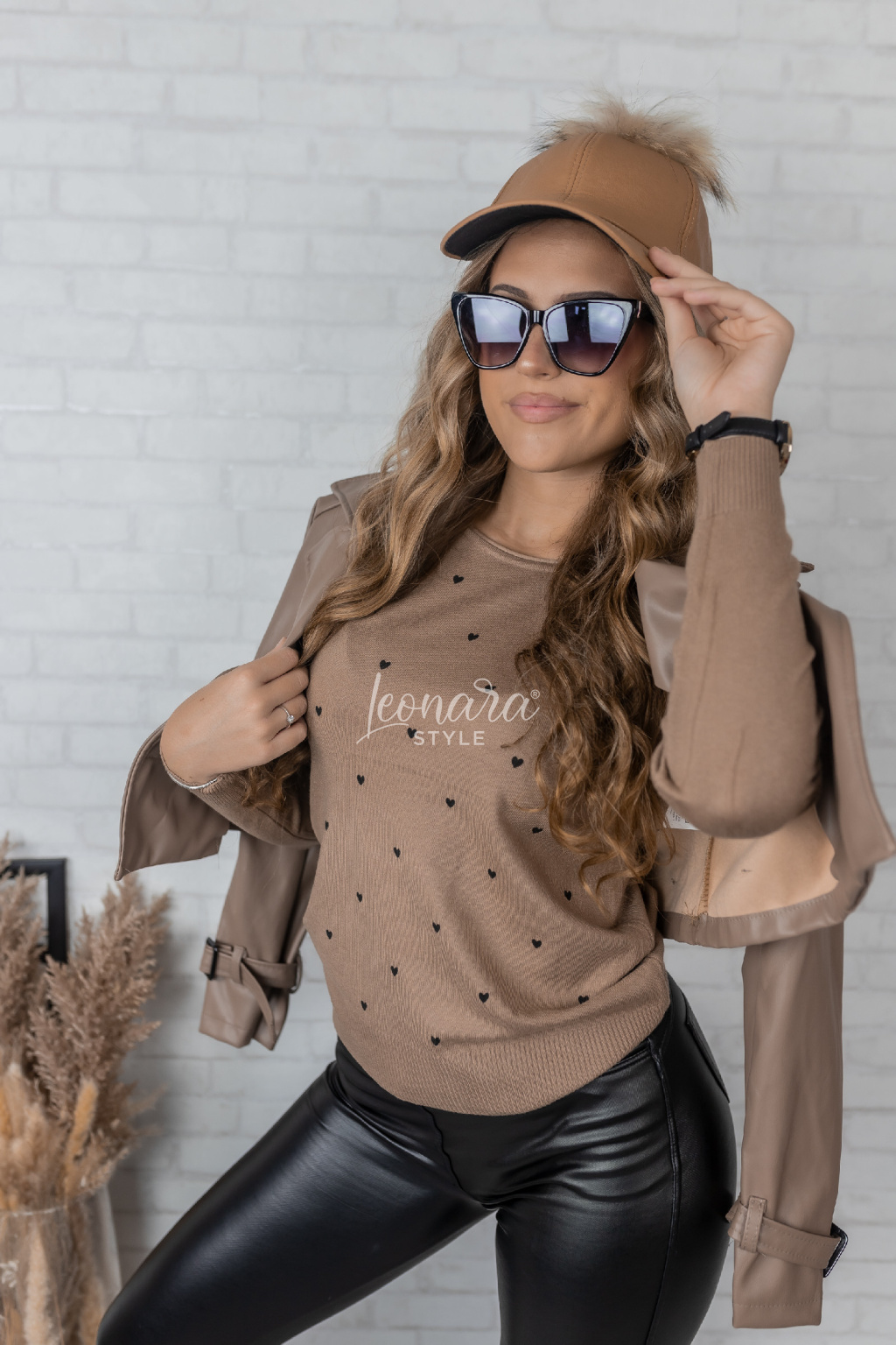 Romantický kousek, který rozzáří každý outfit. Svetřík s dlouhým rukávem je zdobený drobnými srdíčky a vyrobený z příjemného, hebkého materiálu, který se pohodlně nosí po celý den. Díky jednoduchému střihu se skvěle kombinuje jak s džínami, tak i se sukní či koženkovými kalhotami.