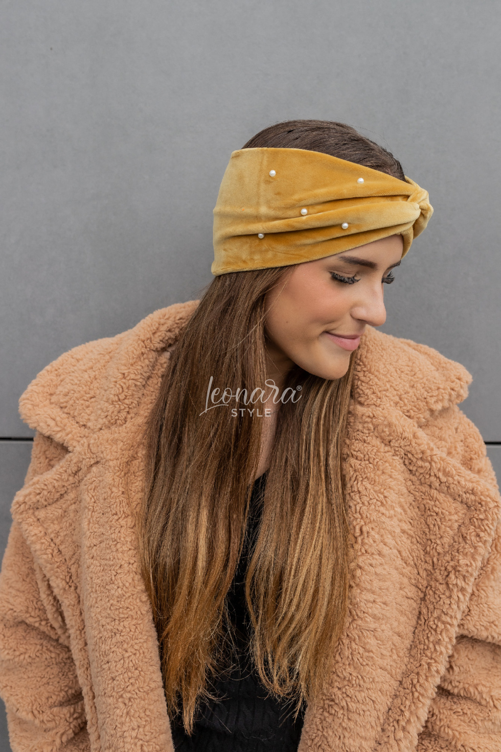 Hořčicová semišová čelenka ESTELLA