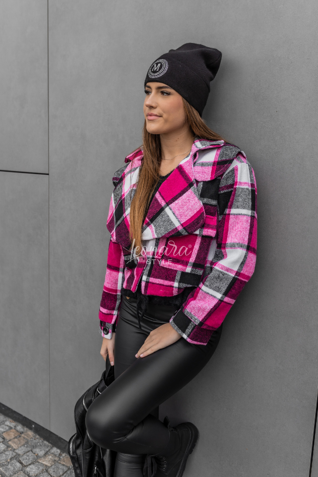 Károvaná růžová bundička PAULINA