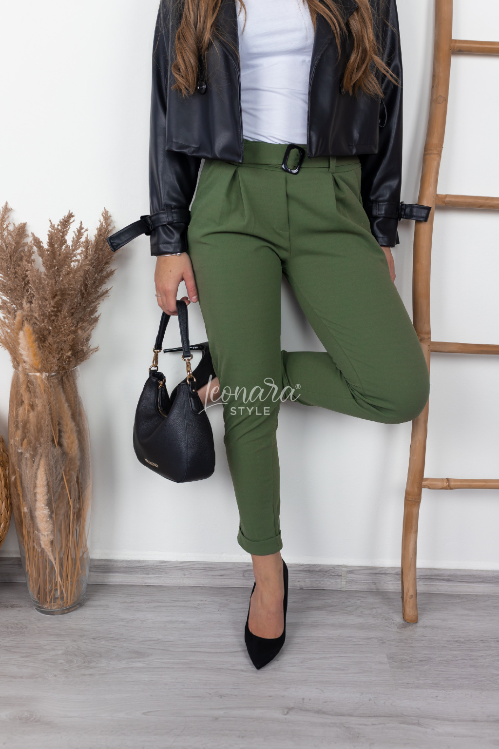 Elegantní kalhoty vyrobené z velmi příjemného materiálu, který zajišťuje pohodlí po celý den. V pase mají pružnou gumu pro lepší přizpůsobení postavě a doplněny jsou látkovým opaskem ve stejné barvě s černou sponou. Kalhoty mají praktické kapsy, volnější střih v oblasti nohavic a jsou jemně zúžené u kotníků, což jim dodává moderní a upravený vzhled. Skvěle se hodí na běžné nošení, do práce i na společenskější příležitosti.
