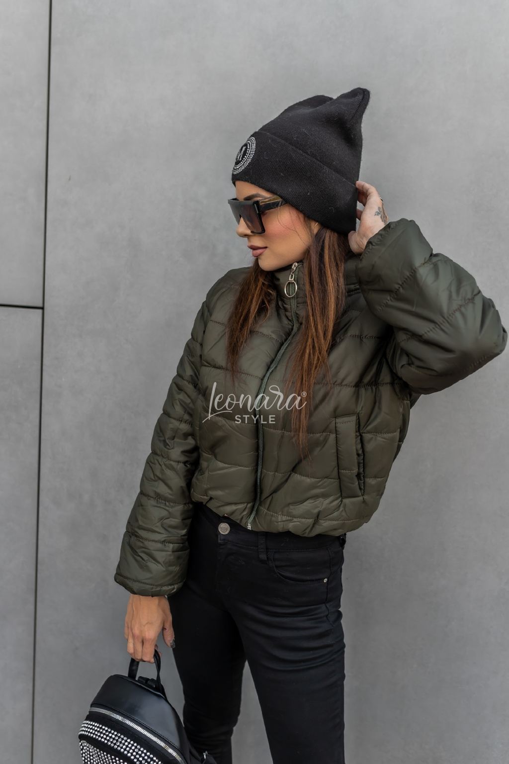 Tato lehká a hřejivá prošívaná bunda v trendy khaki barvě je ideální volbou na chladnější dny! Díky modernímu crop střihu skvěle padne a snadno ji zkombinujete s džínami nebo legínami. Praktické zapínání na zip umožňuje snadné oblékání, zatímco postranní kapsy poskytují místo na drobnosti. Je nejen stylová, ale také pohodlná a univerzální Je vhodná pro každodenní nošení.