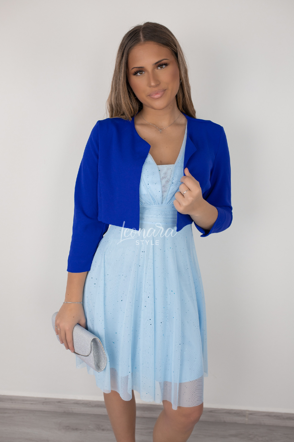 Lehké bolerko z velmi příjemného materiálu, které je ideální jako stylový doplněk k vašemu outfitu. Má tříčtvrteční rukávy a je navrženo pouze na přehození bez zapínání. Skvěle se hodí k šatům, topům i tílkům, když potřebujete jemně zakrýt ramena nebo doplnit outfit o elegantní vrstvu. Využijete ho do práce, na společenské události i během chladnějších letních večerů.