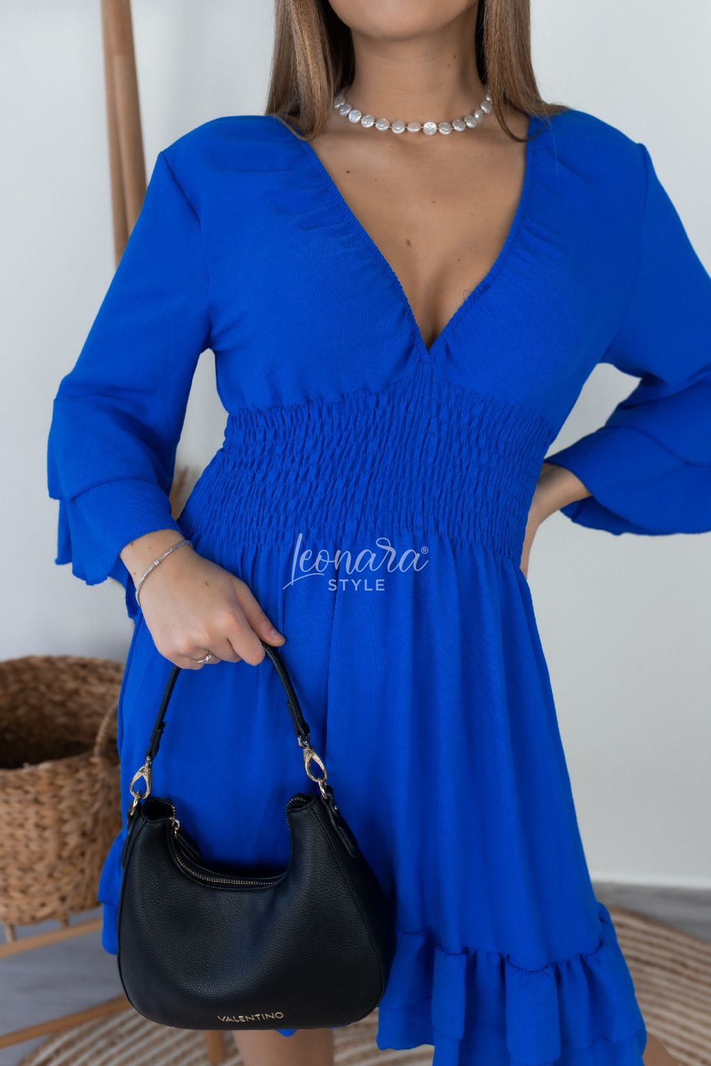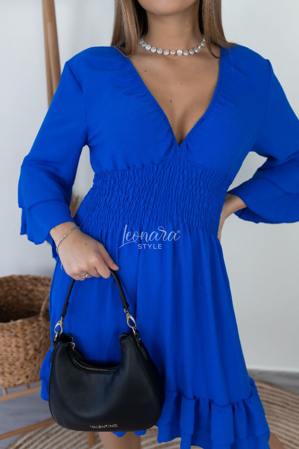 Jednobarevné volánkové letní šaty z velmi příjemného, lehkého materiálu. Mají elegantní výstřih do V a v pase širokou gumu, která krásně zvýrazní siluetu. Rukávy i spodní lem jsou doplněny jemným volánkem, který dodává šatům ženský a vzdušný vzhled. Ideální volba na teplé letní dny i lehce elegantní příležitosti.