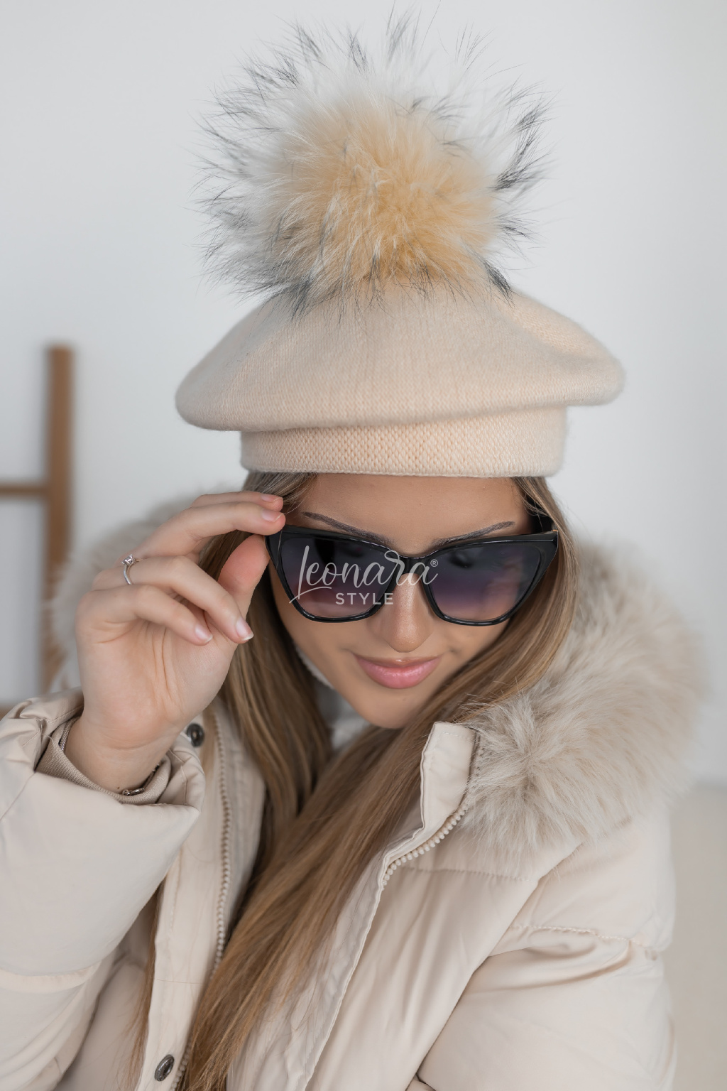 Elegantní pletená baretka s bohatou bambulí, která je upevněna na praktický patentek a lze ji snadno sundat. Je mimořádně příjemná na nošení, hebká na dotek a krásně zahřeje. Baretka se dá nosit s bambulí pro hravý vzhled i bez ní jako klasický elegantní kousek.