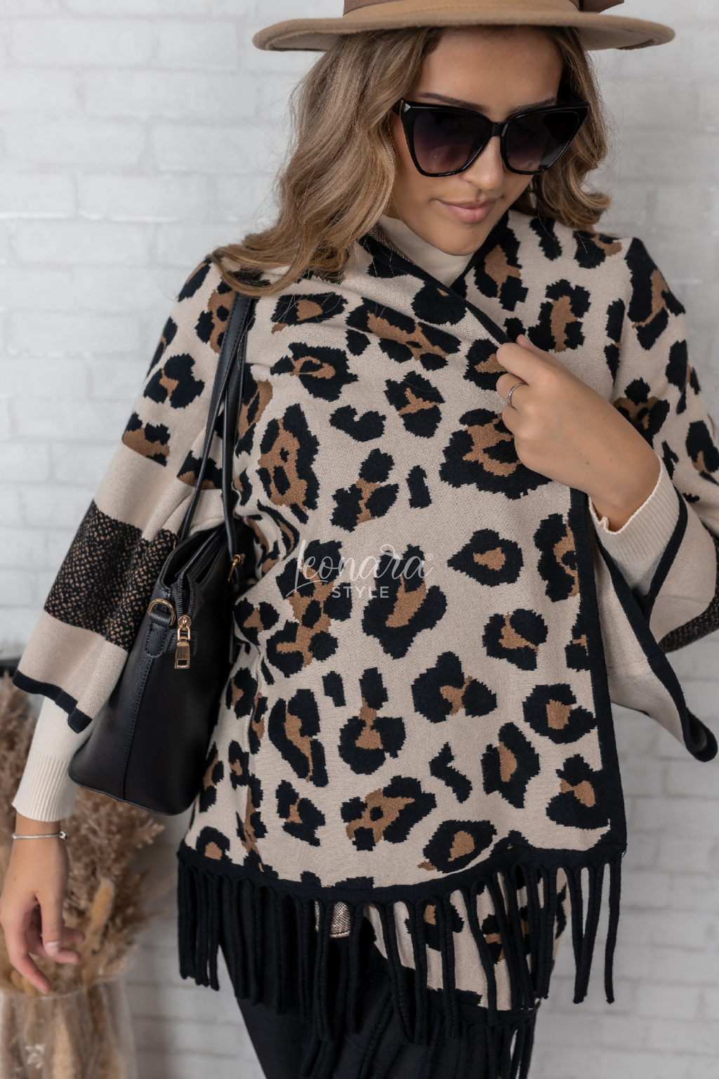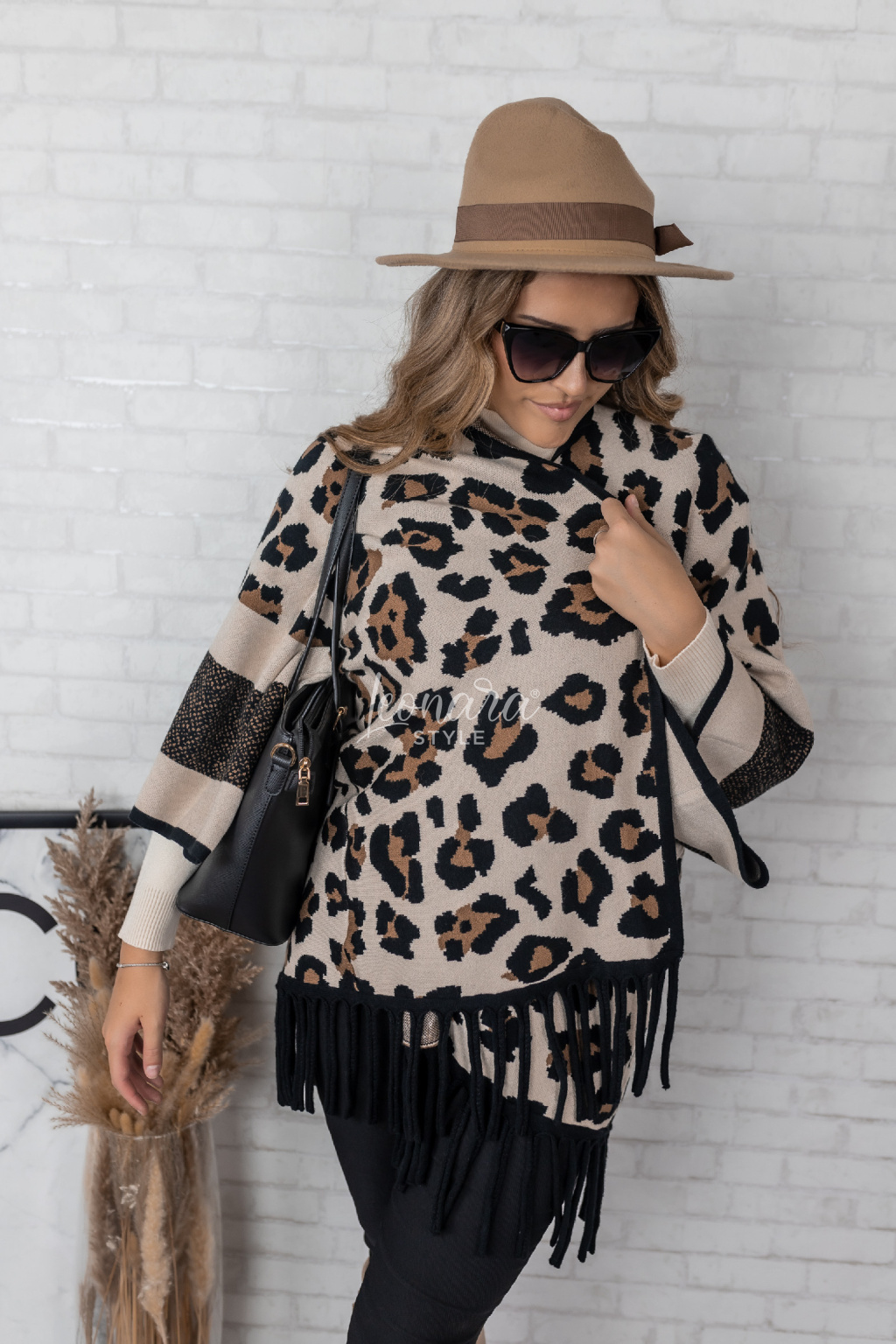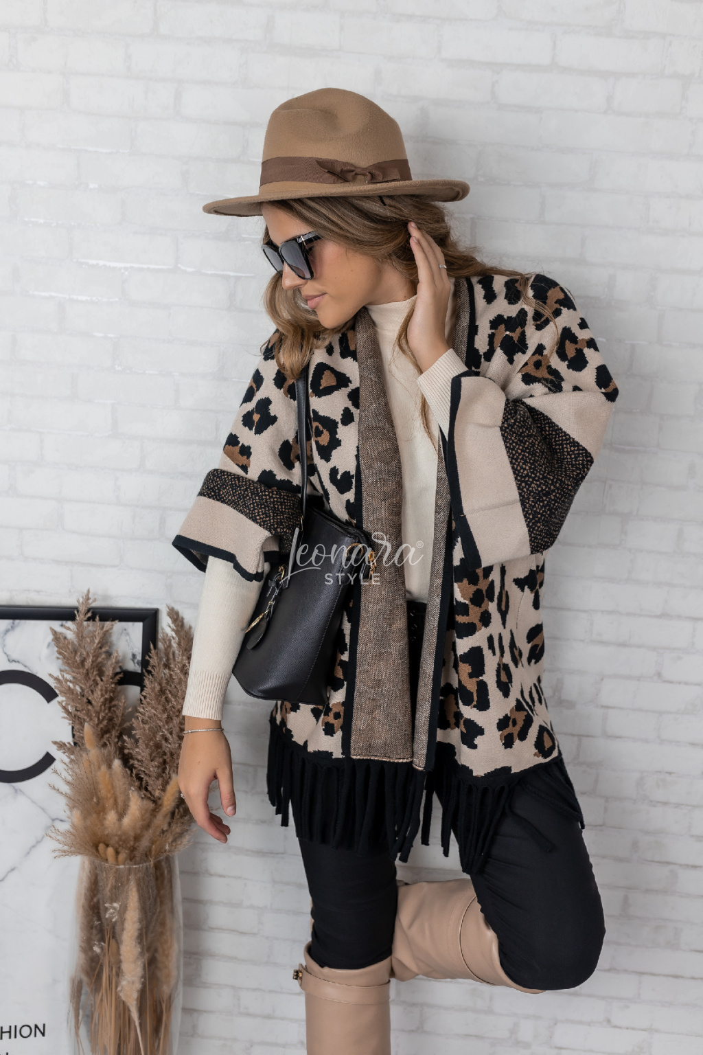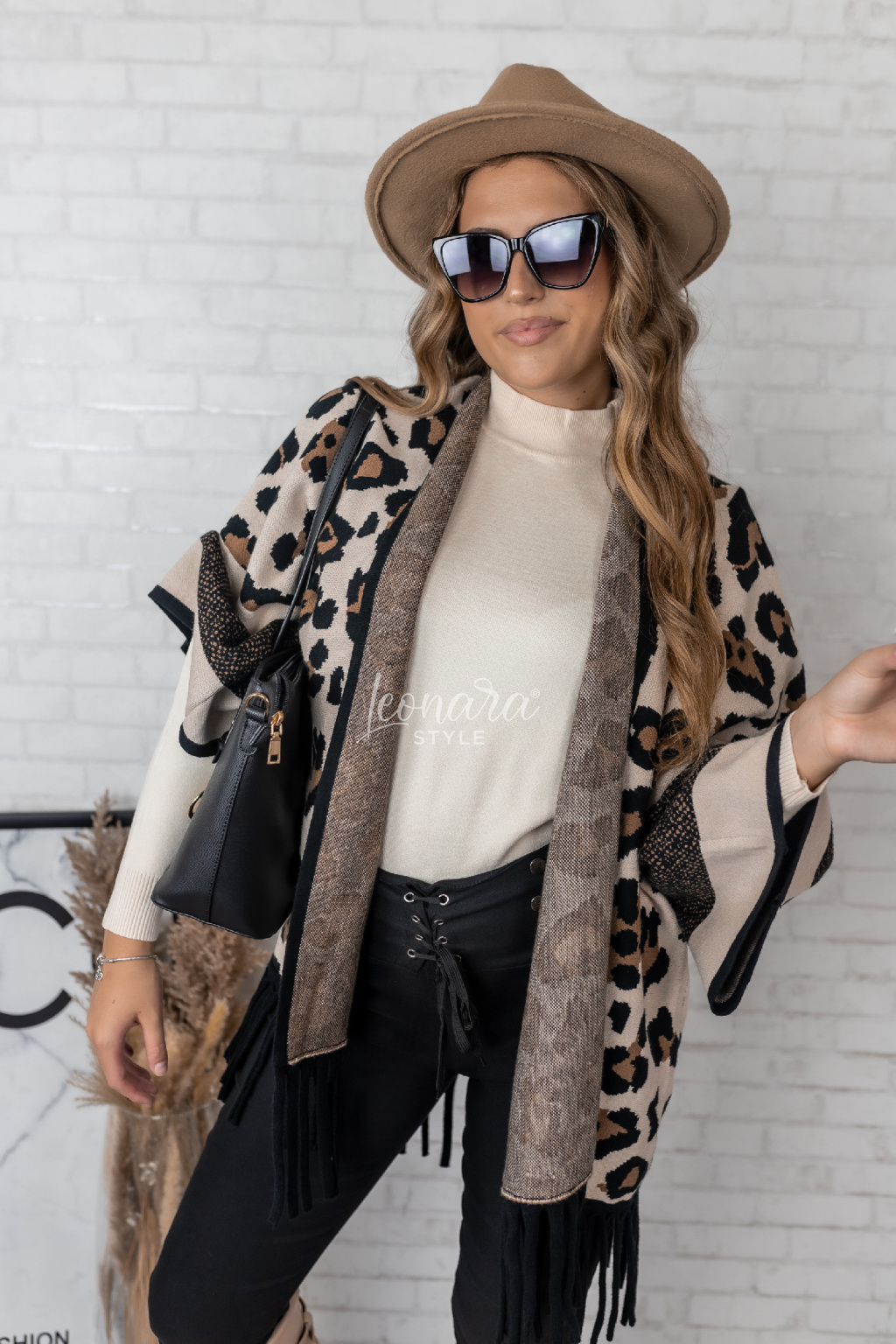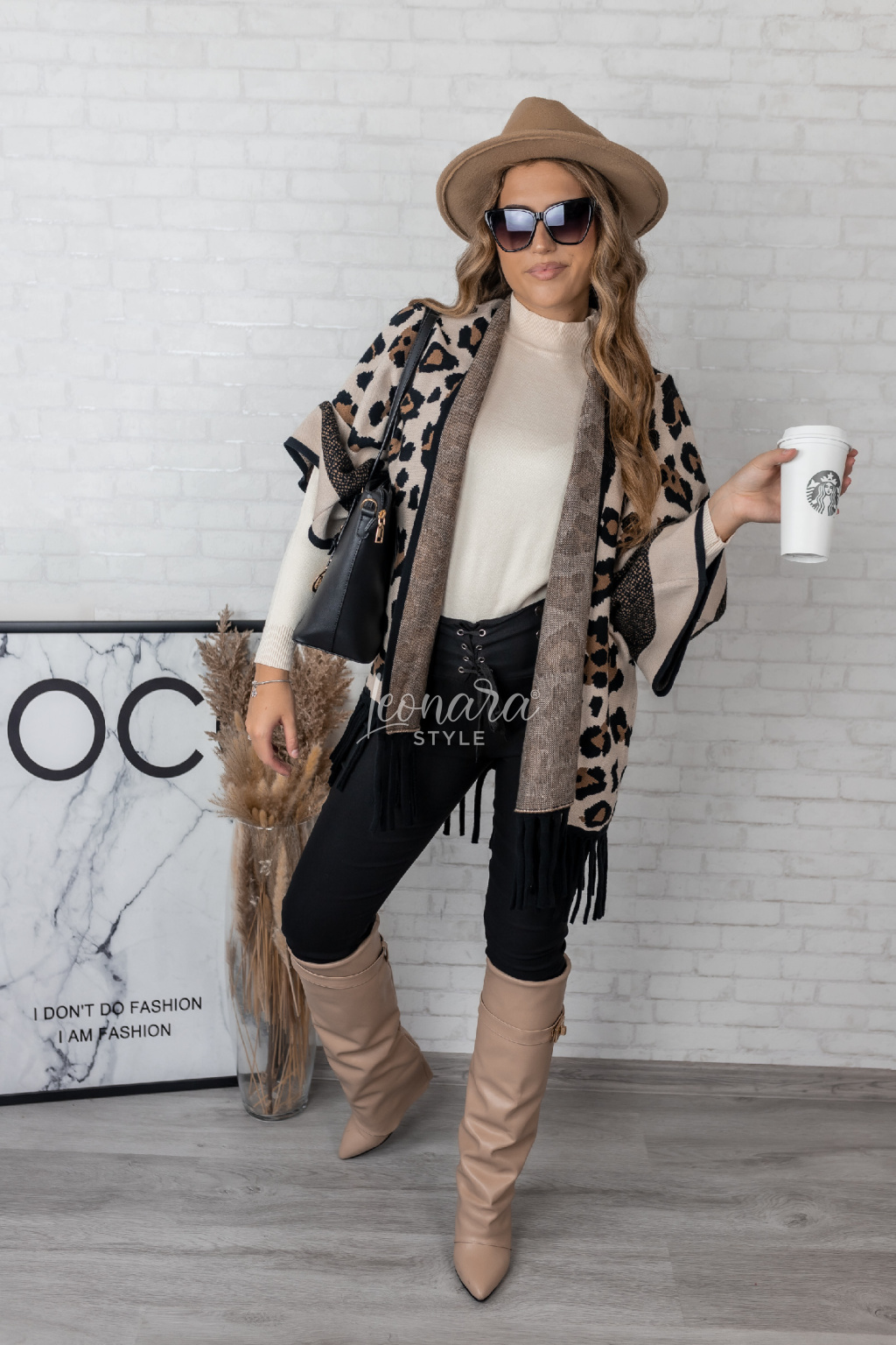 Stylový podzimní přehoz se zvířecím vzorem, který dodá každému outfitu výrazný a moderní vzhled. Díky univerzální velikosti a příjemnému materiálu se pohodlně nosí a hodí se pro každou postavu. Spodní třásně působí originálně a podtrhují ležérní eleganci tohoto kousku. Vhodný i pro plus size.
