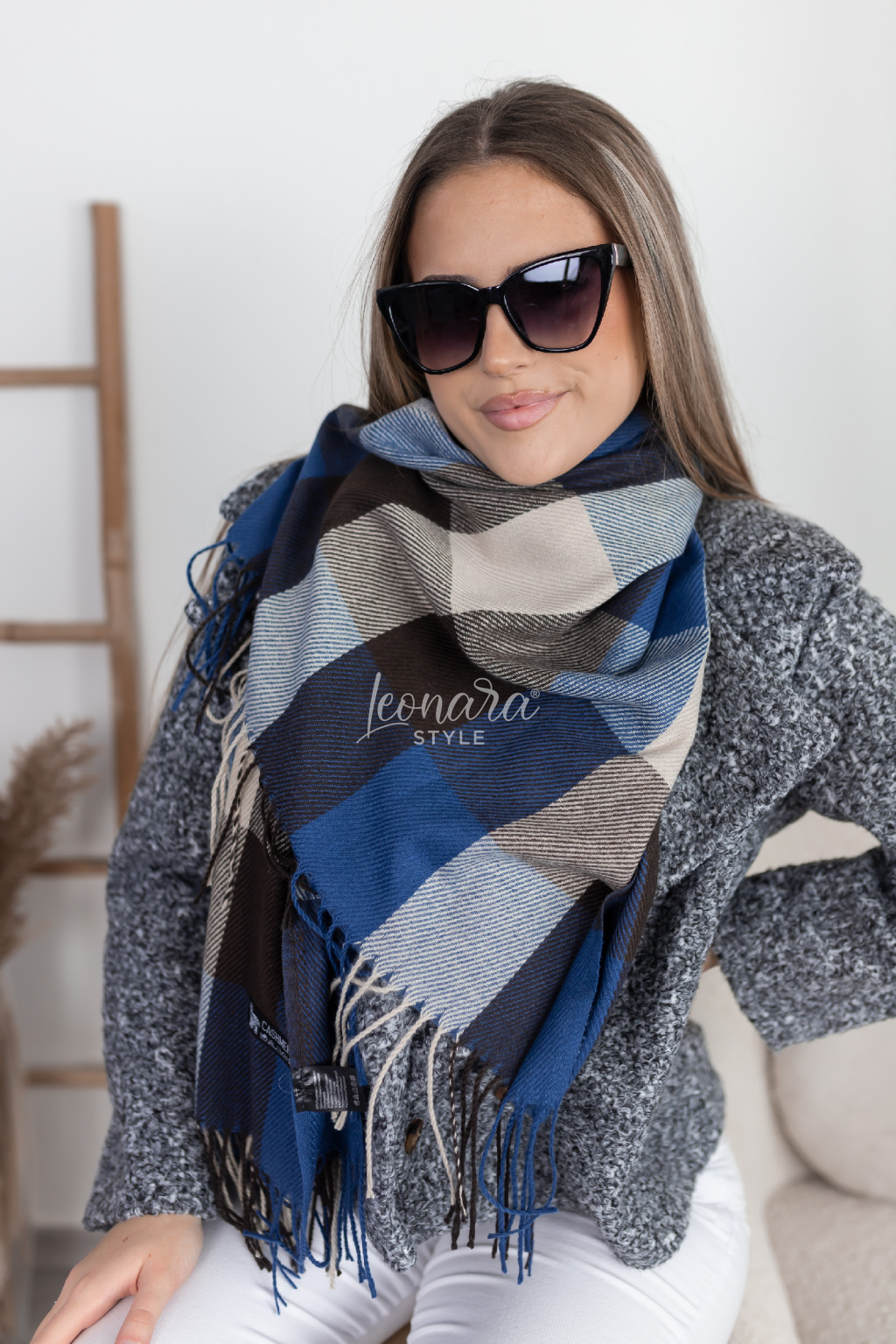 Modrá kostkovaná šála ANGELICA