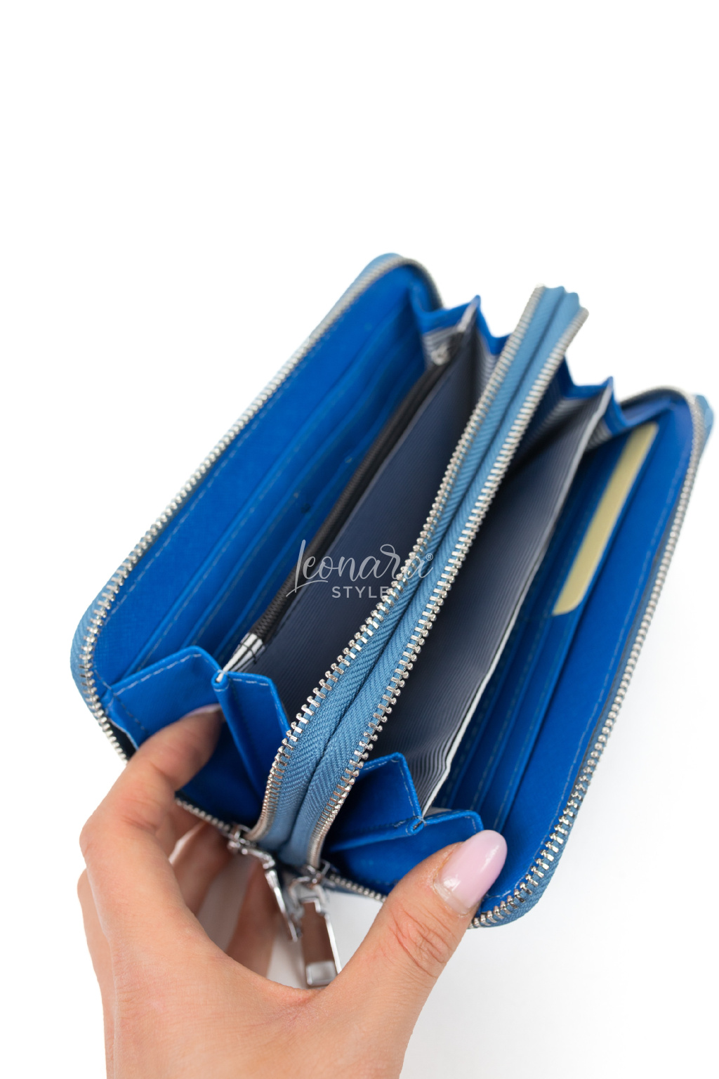 Vnitřní uspořádání: 4 kapsy na bankovky, 1 uzavíratelná kapsa na zip na drobné mince, 8 kapes na karty