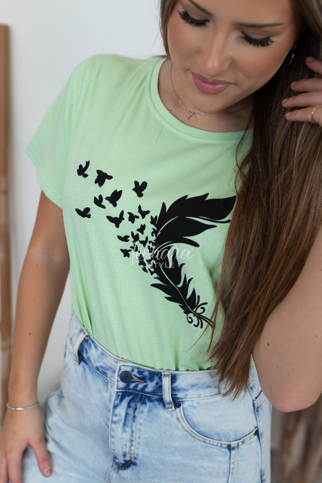 Klasické jednobarevné oversize tričko vhodné i pro větší velikosti spojuje maximální pohodl. Je vyrobené z velmi příjemného, lehkého a prodyšného materiálu s mírnou elasticitou, díky které se krásně přizpůsobí postavě a nikde netlačí. Zajímavým detailem je jemný motiv peří, který dodává tričku originální vzhled. Má elegantní U výstřih. Toto z něj dělá ideální kousek pro jarní dny i každodenní nošení.