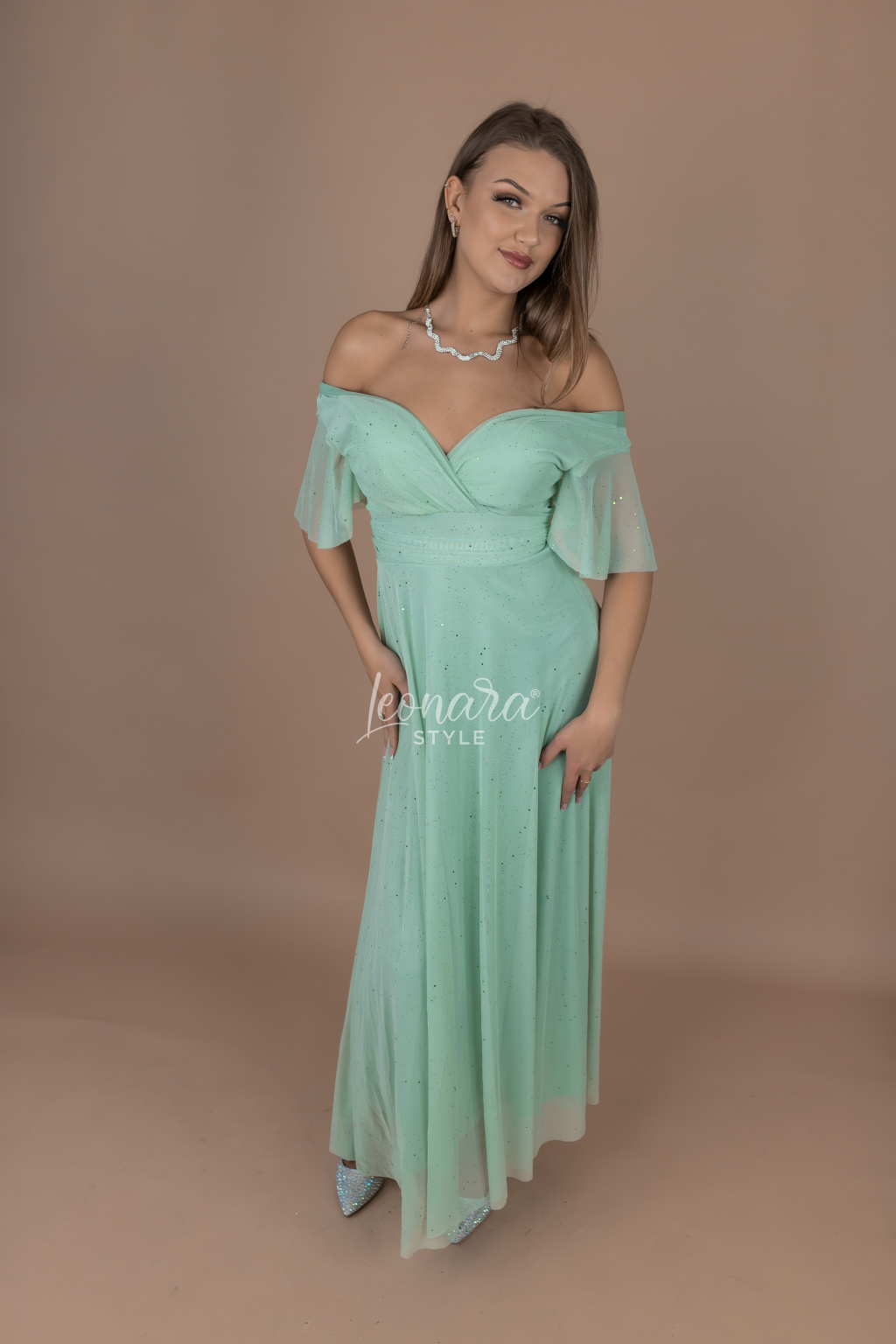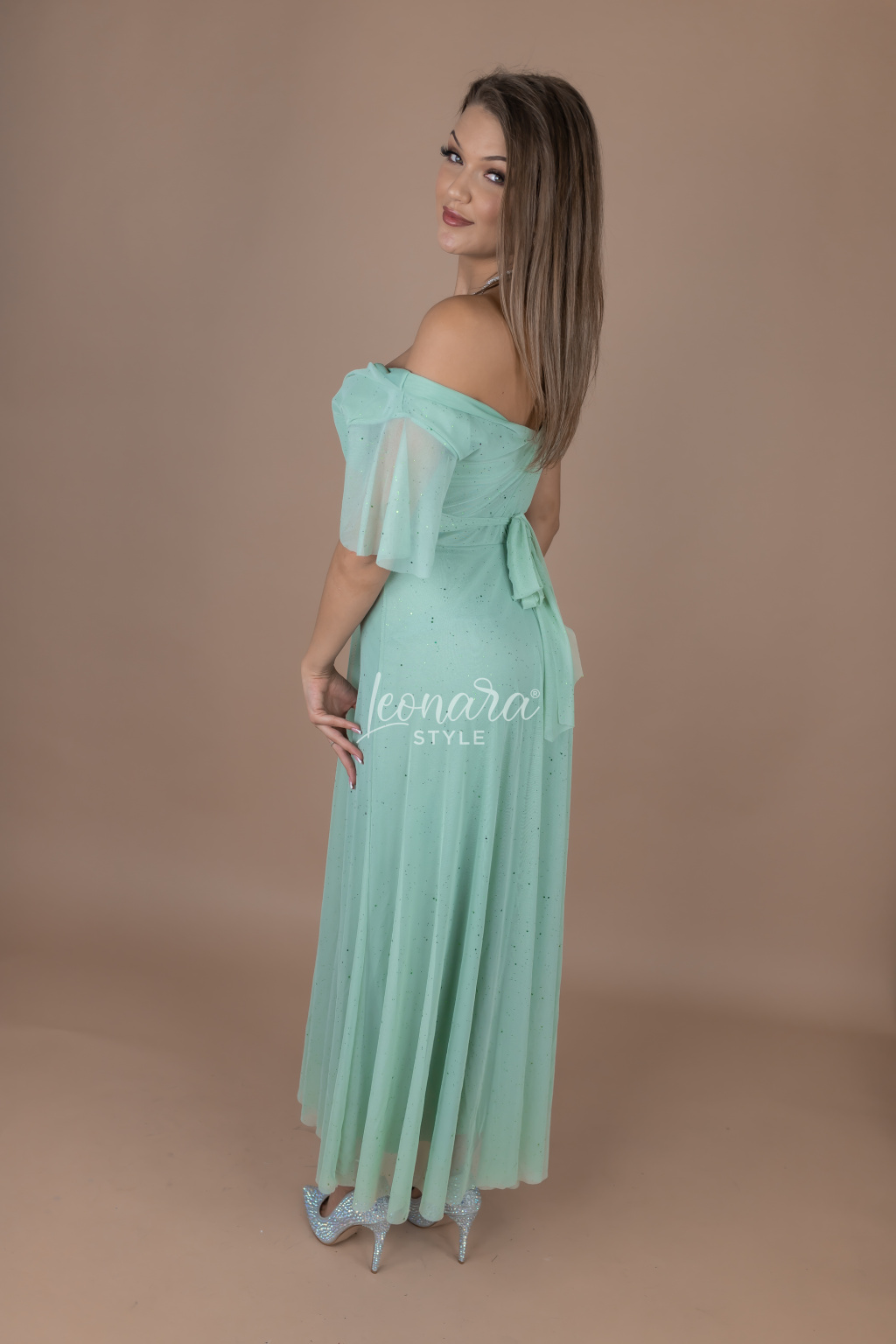 Okouzlující tylové šaty s jemným třpytem, které působí svátečně a elegantně. Nabízejí variabilitu při nošení – můžete je nechat klasicky nebo odhalit ramena pro rafinovanější vzhled. Nadčasový kousek s drobnými rukávky, které decentně zakryjí paže, a všitým páskem, díky kterému si v pase vytvoříte dokonalou siluetu. Ideální volba pro ty, kteří hledají lehkost a styl v jednom.