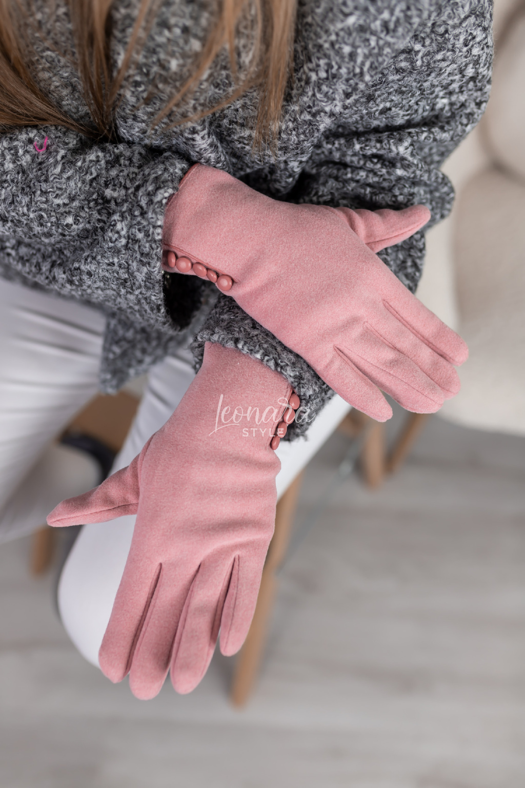 Elegantní semišové rukavice s jemnými cvočky na zápěstí působí stylově a žensky. Díky pružnému materiálu se příjemně přizpůsobí ruce a zajistí pohodlí při nošení. Na ukazováčku mají decentní květinový detail umožňující ovládání dotykového displeje. Ideální doplněk pro chladnější dny.