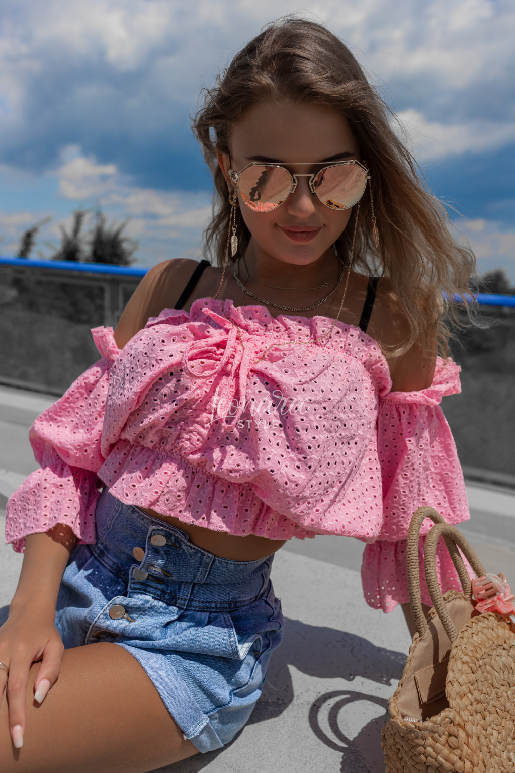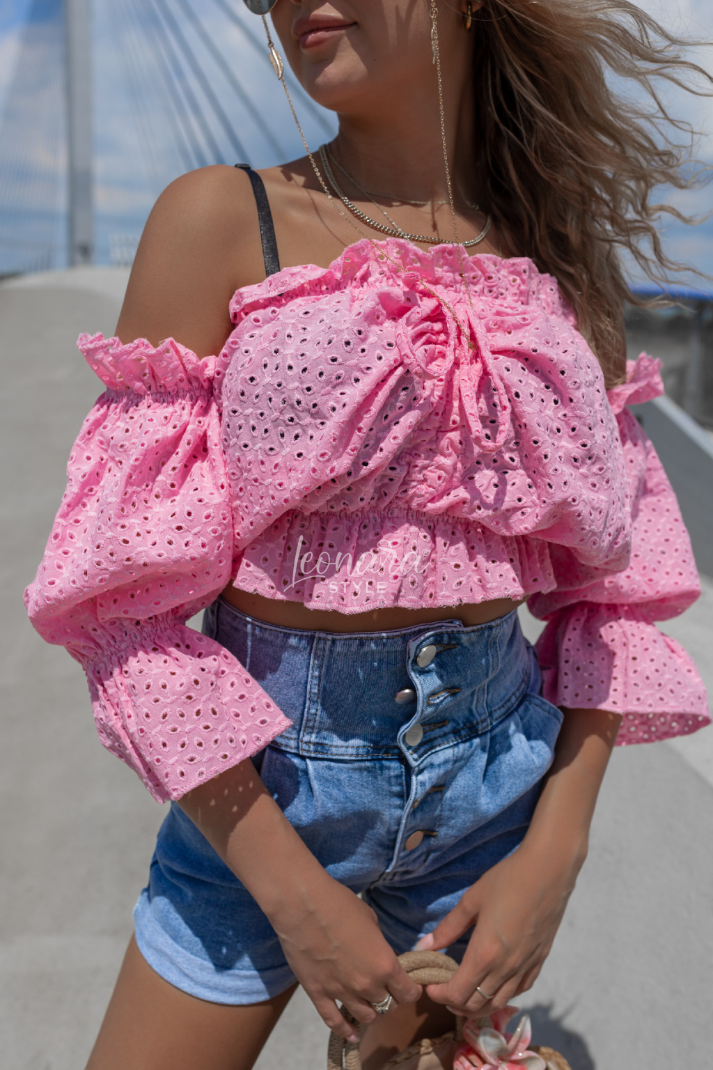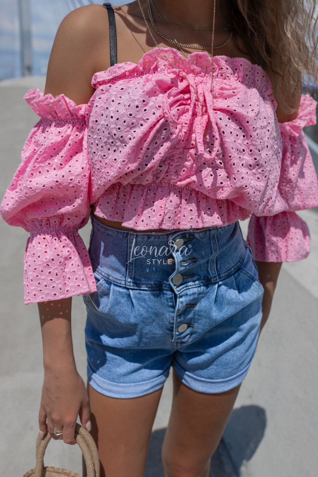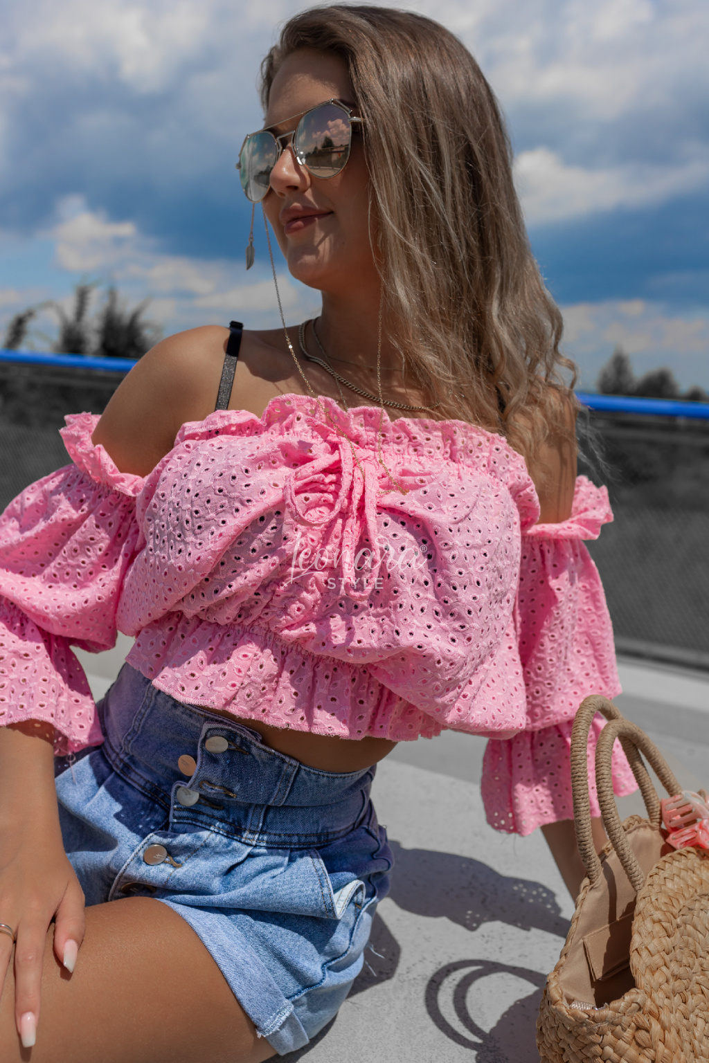 Stylová halenka z jemné vyšívané bavlny okouzlí svým volánovým střihem a odhalenými rameny. Díky pružnému žabkování skvěle sedí a zvýrazní pas, zatímco zavazování ve výstřihu dodá něžný detail. Ideální k džínovým kraťasům nebo sukním – pro outfit, který je pohodlný, ale zároveň nepřehlédnutelný. 💕