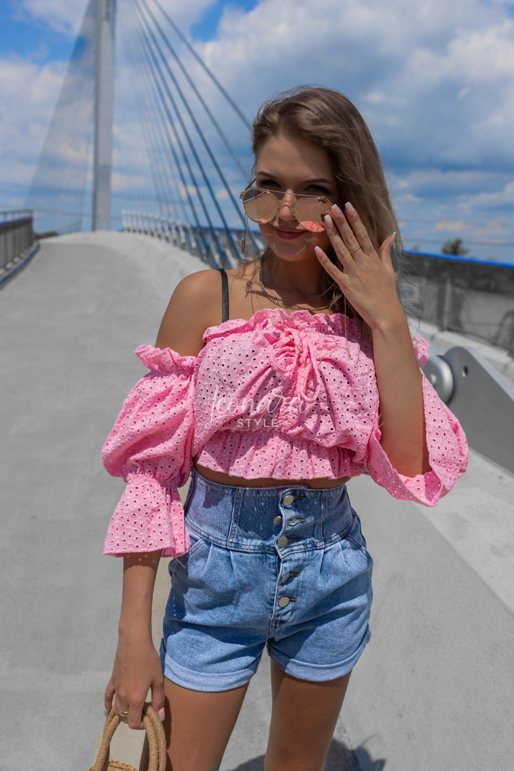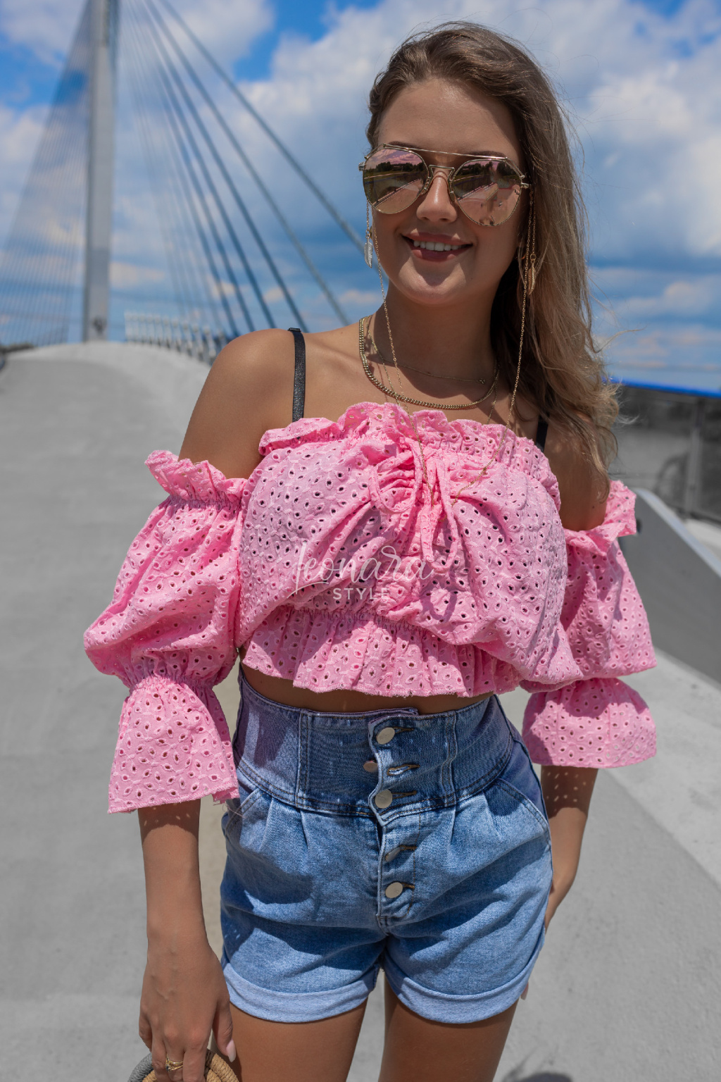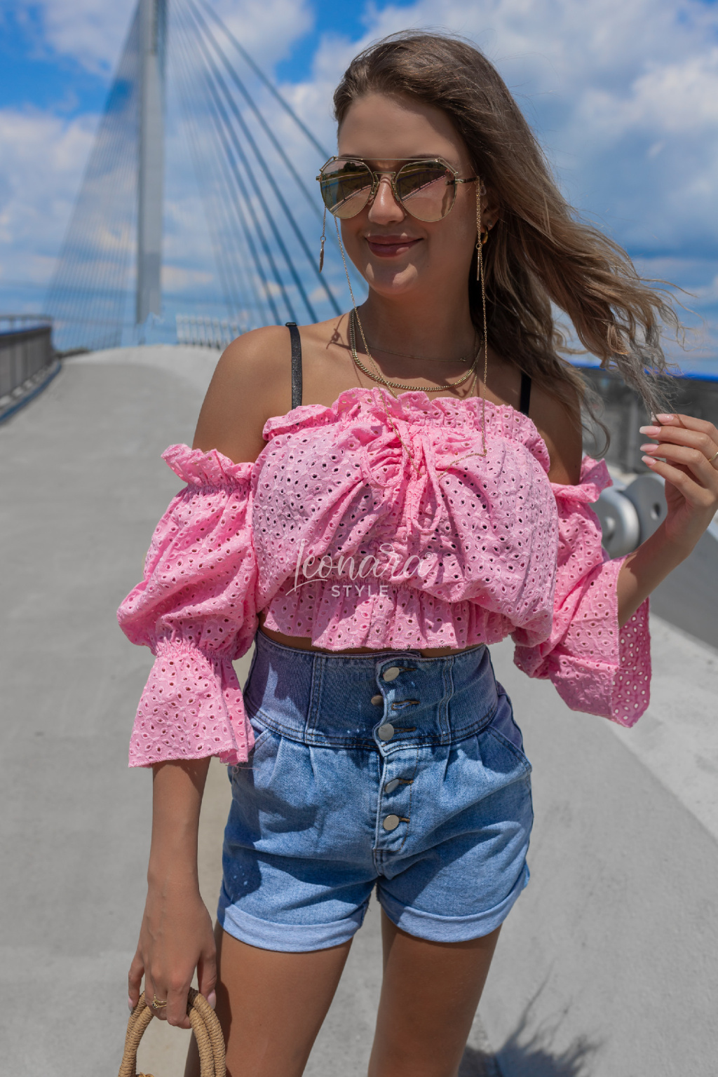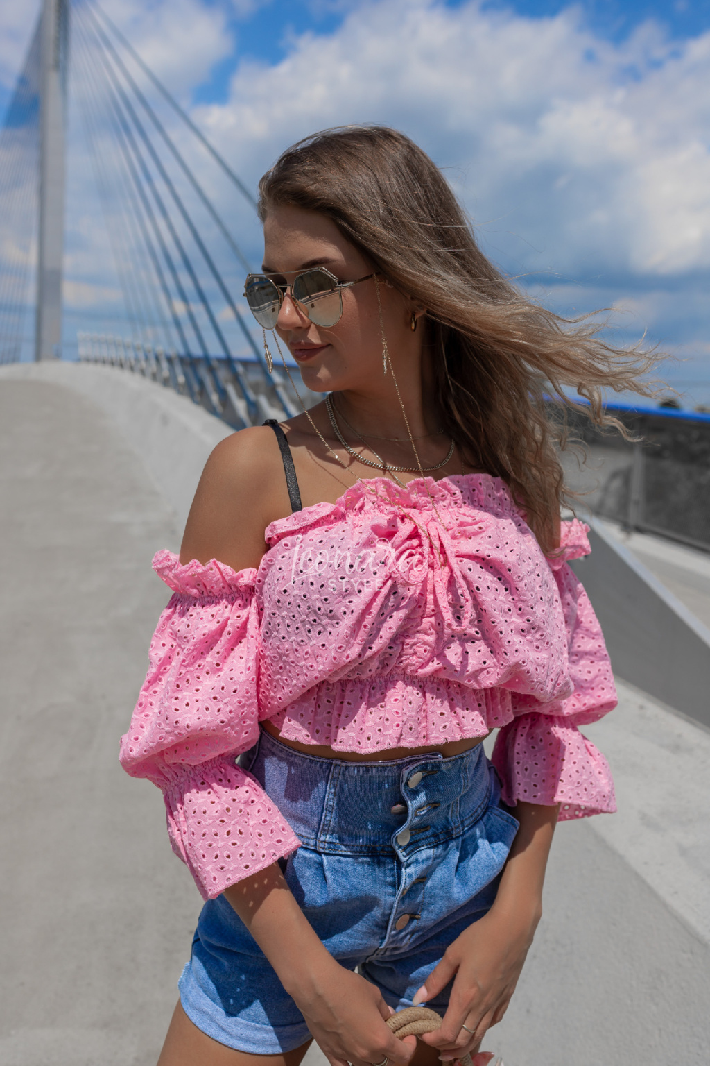 Stylová halenka z jemné vyšívané bavlny okouzlí svým volánovým střihem a odhalenými rameny. Díky pružnému žabkování skvěle sedí a zvýrazní pas, zatímco zavazování ve výstřihu dodá něžný detail. Ideální k džínovým kraťasům nebo sukním – pro outfit, který je pohodlný, ale zároveň nepřehlédnutelný. 💕