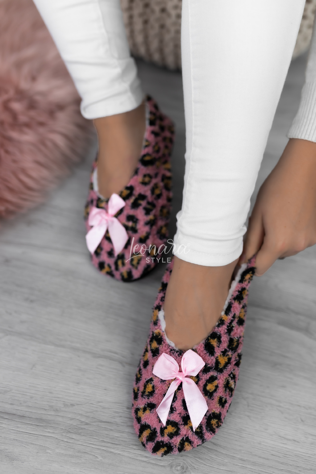 Růžové leopardí zateplené bačkůrky LANA