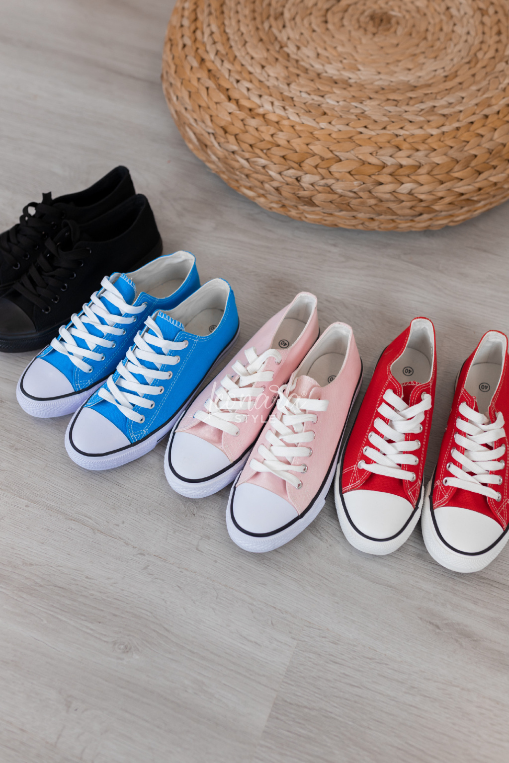 Lehké jarní látkové tenisky z prodyšné textilie jsou ideální pro každodenní nošení. Mají klasické šněrování na tkaničky, pohodlnou podrážku a jednobarevný design. Dostupné jsou ve více variantách látek. Skvěle se hodí k džínám, šatům, sukním i kraťasům a snadno doplní každý jarní outfit.