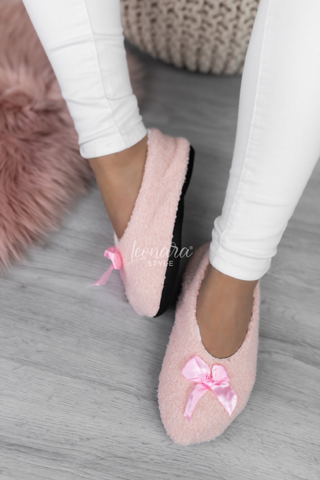 Elegantní a nadčasové domácí bačkůrky ve tvaru balerín, které vynikají svou jednoduchostí a pohodlím. Jsou zateplené hebkým kožíškem, takže příjemně zahřejí, a ozdobná mašle dodává jemný ženský detail. Jednobarevné provedení se snadno kombinuje s domácím outfitem. Protiskluzová podrážka zajistí bezpečný pohyb po bytě.