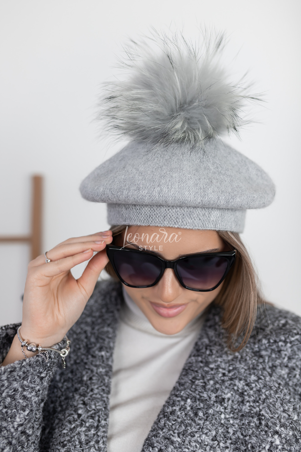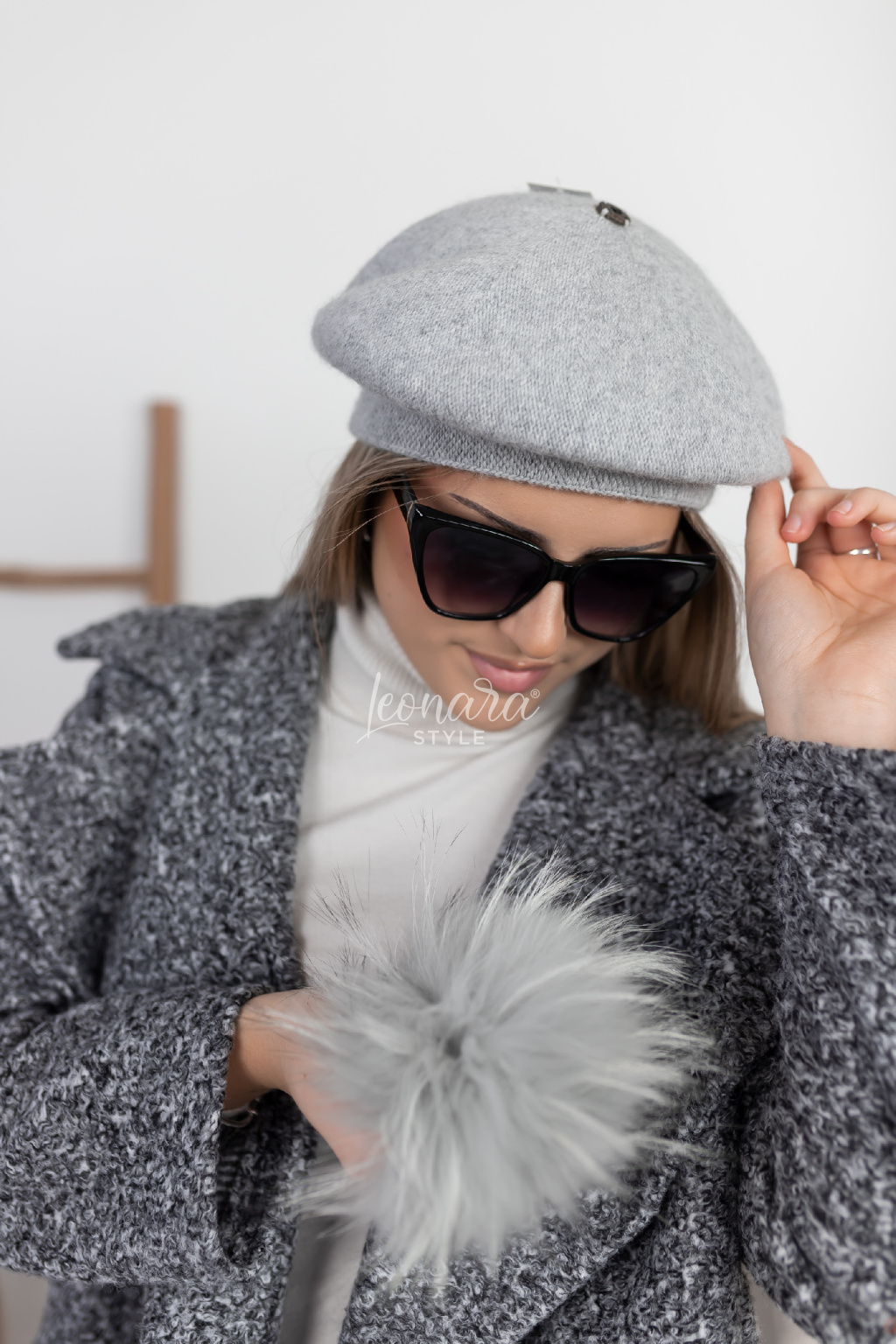 Elegantní pletená baretka s bohatou bambulí, která je upevněna na praktický patentek a lze ji snadno sundat. Je mimořádně příjemná na nošení, hebká na dotek a krásně zahřeje.  Baretka se dá nosit s bambulí pro hravý vzhled i bez ní jako klasický elegantní kousek.