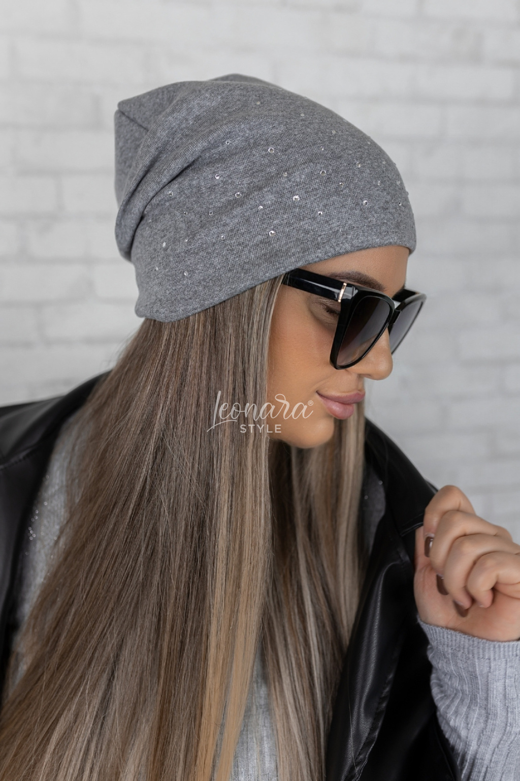 Světle šedá třpytivá flaušová čepice SPARKLY