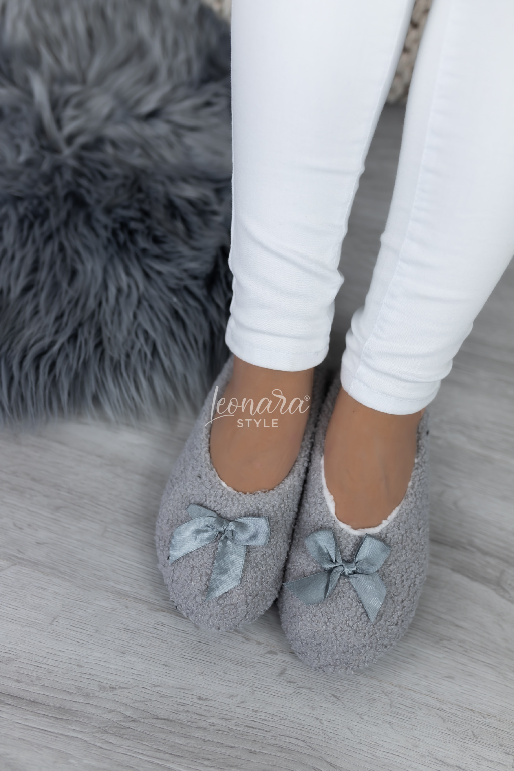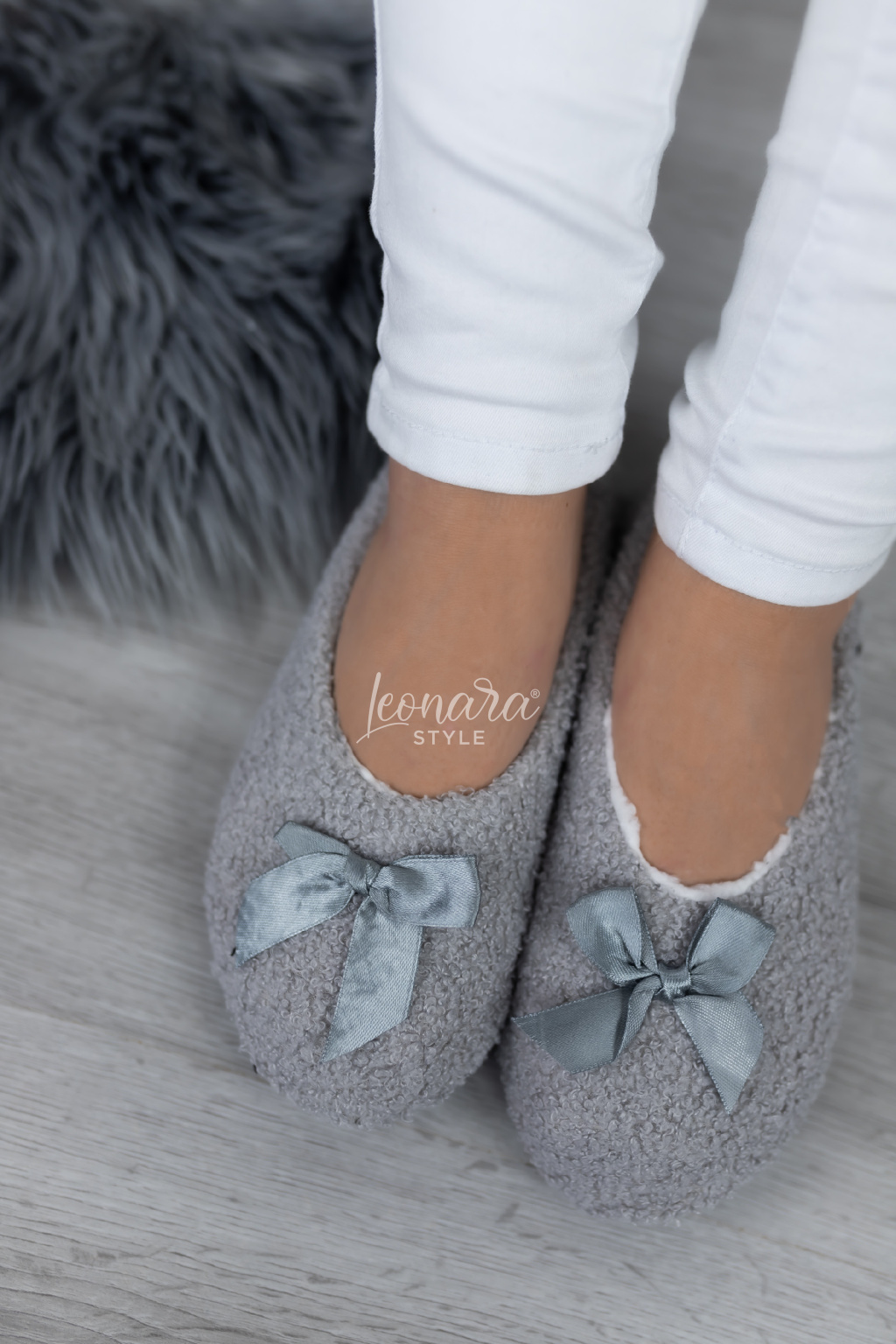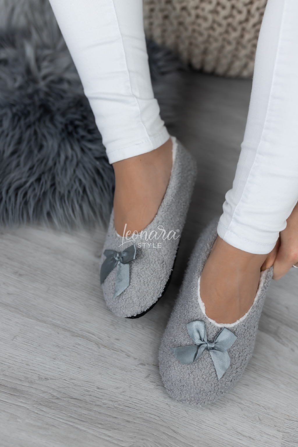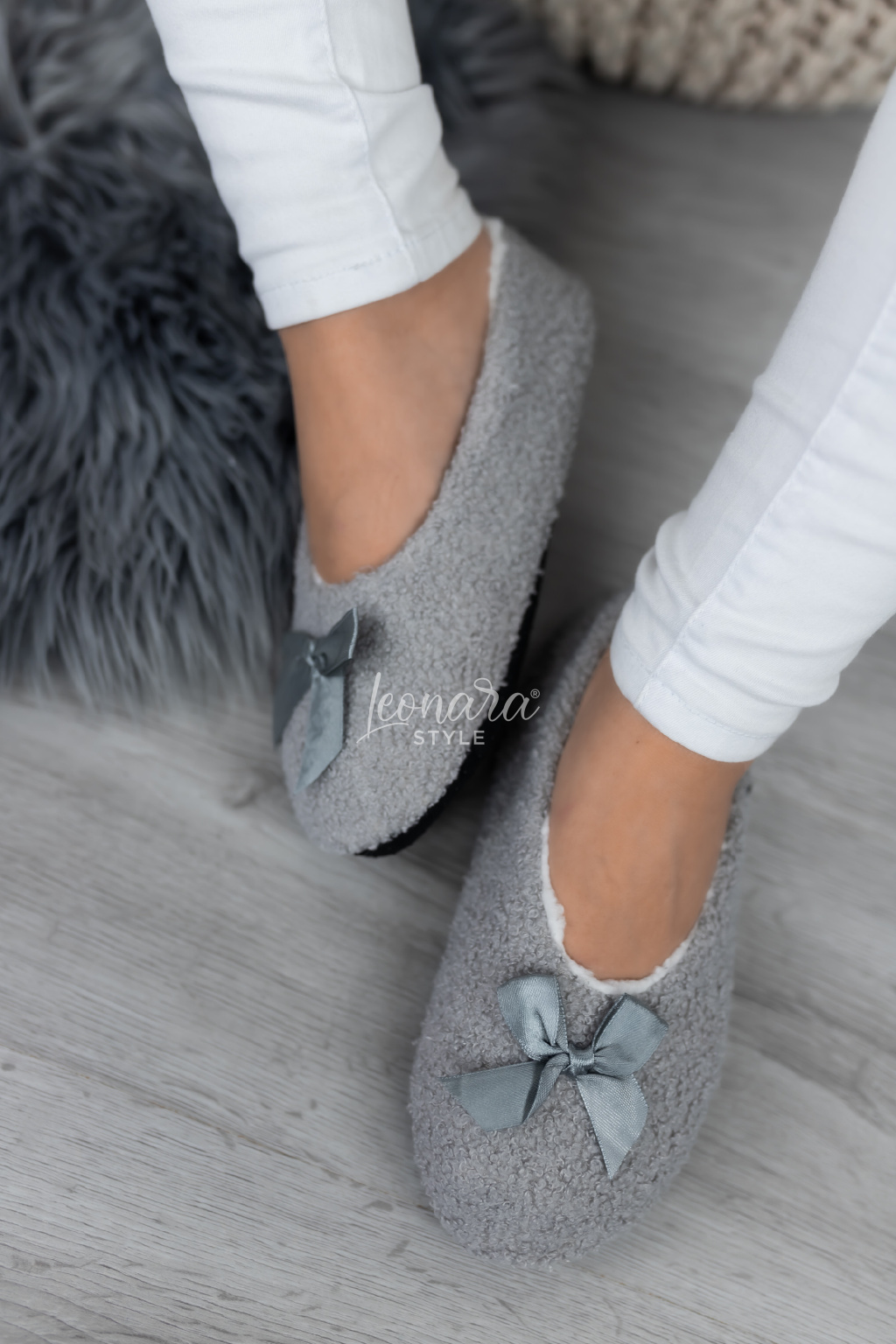 Elegantní a nadčasové domácí bačkůrky ve tvaru balerín, které vynikají svou jednoduchostí a pohodlím. Jsou zateplené hebkým kožíškem, takže příjemně zahřejí, a ozdobná mašle dodává jemný ženský detail. Jednobarevné provedení se snadno kombinuje s domácím outfitem. Protiskluzová podrážka zajistí bezpečný pohyb po bytě.