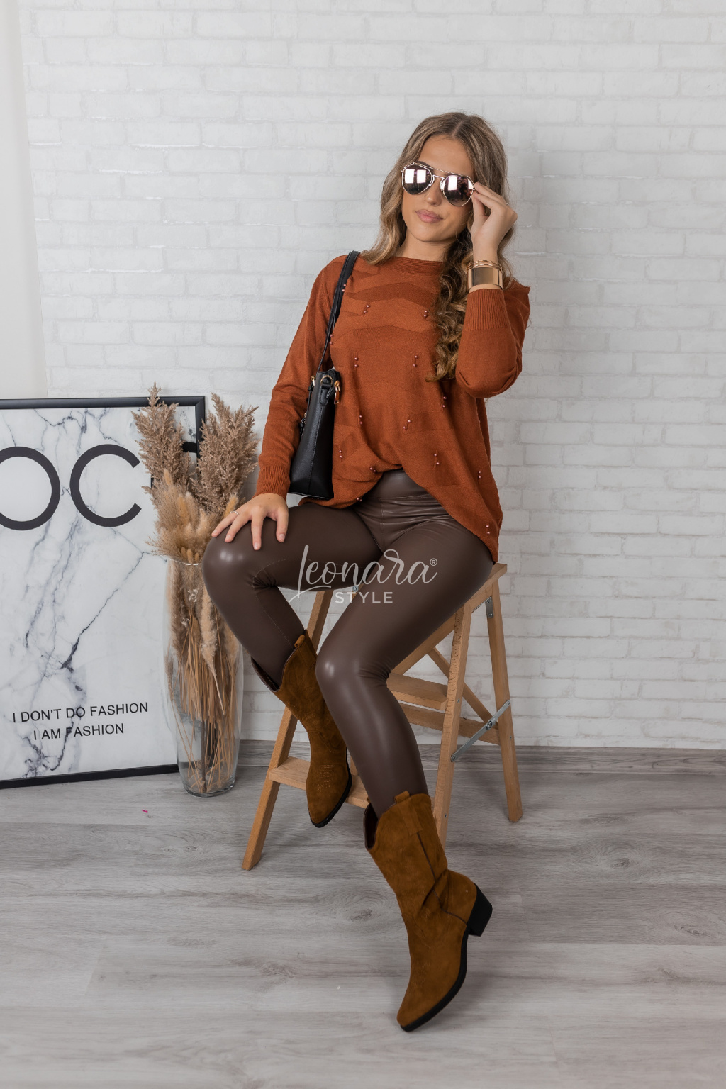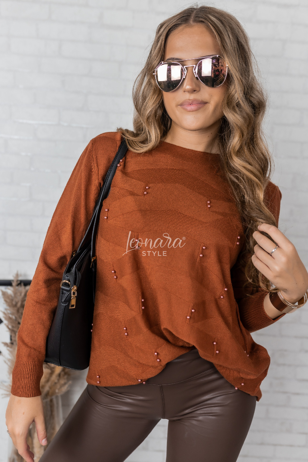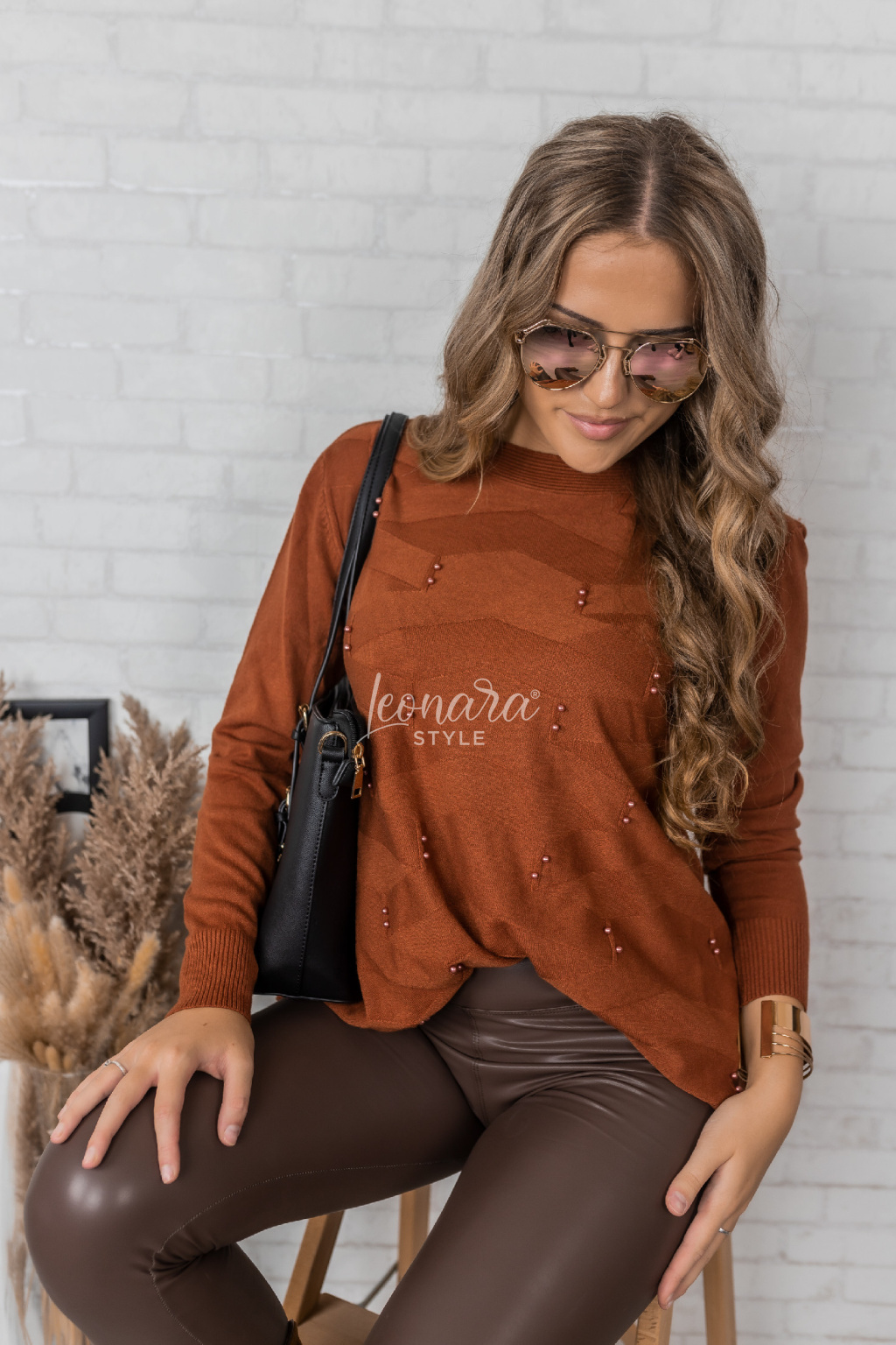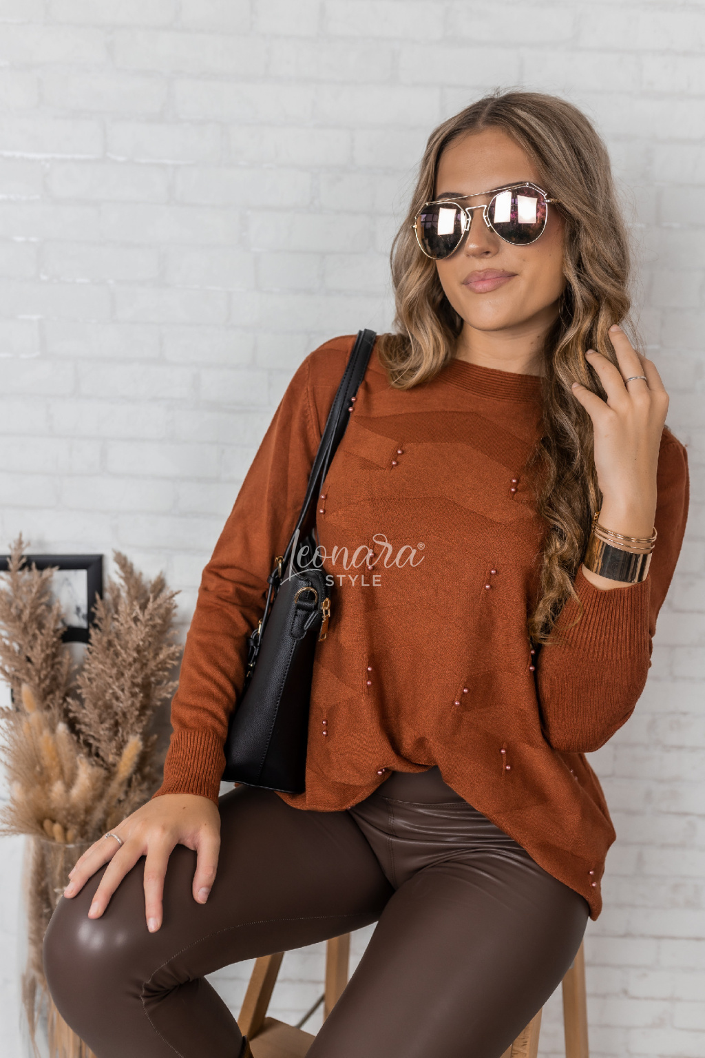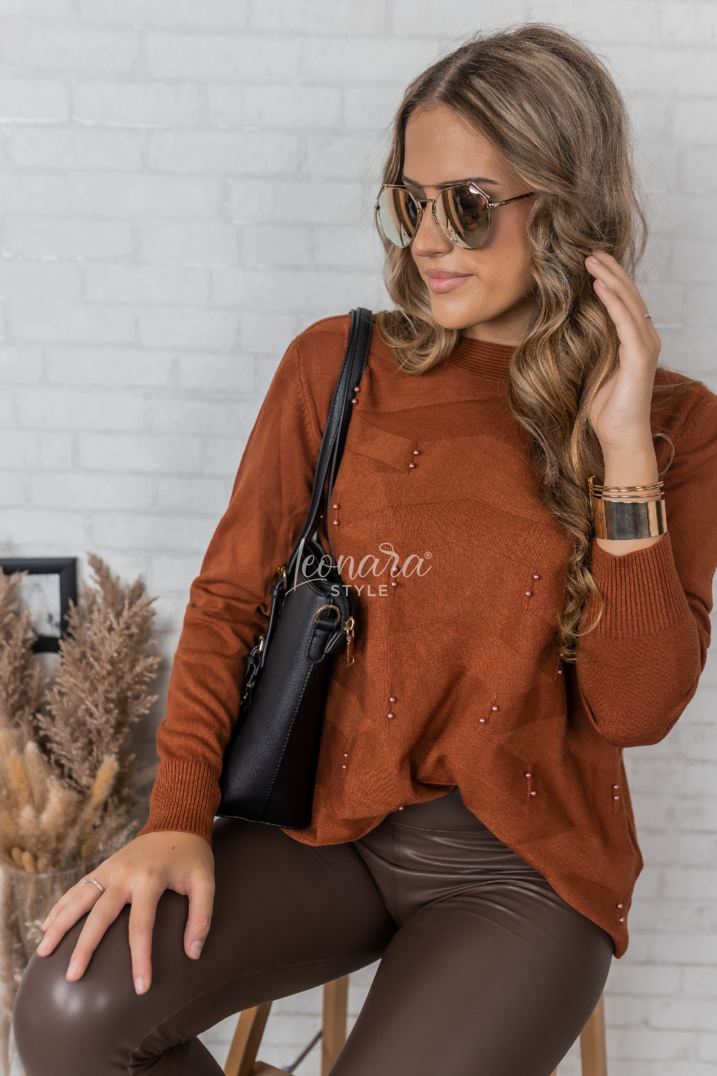 Skořicová netopýří halenka s perličkami PEARL