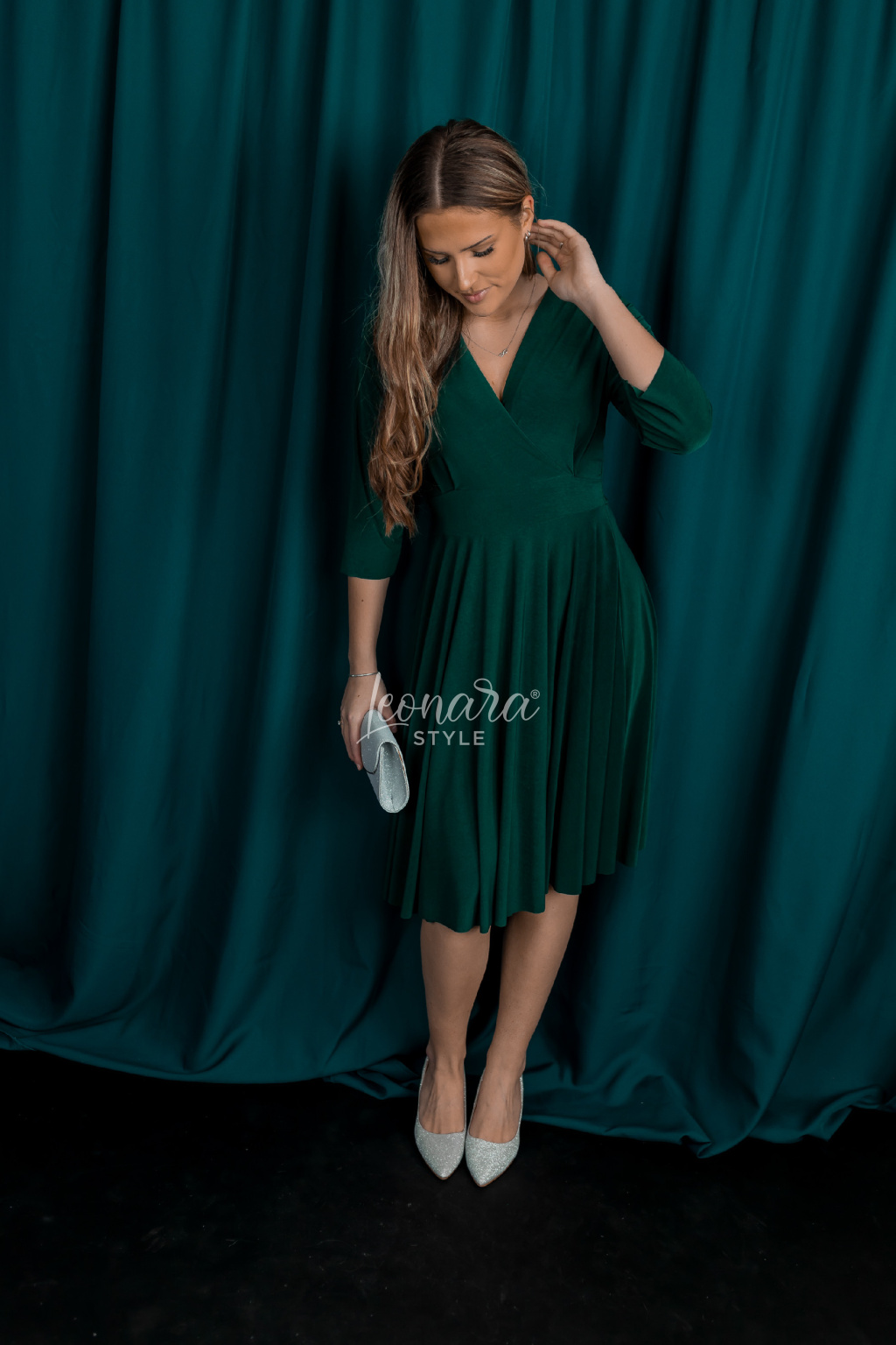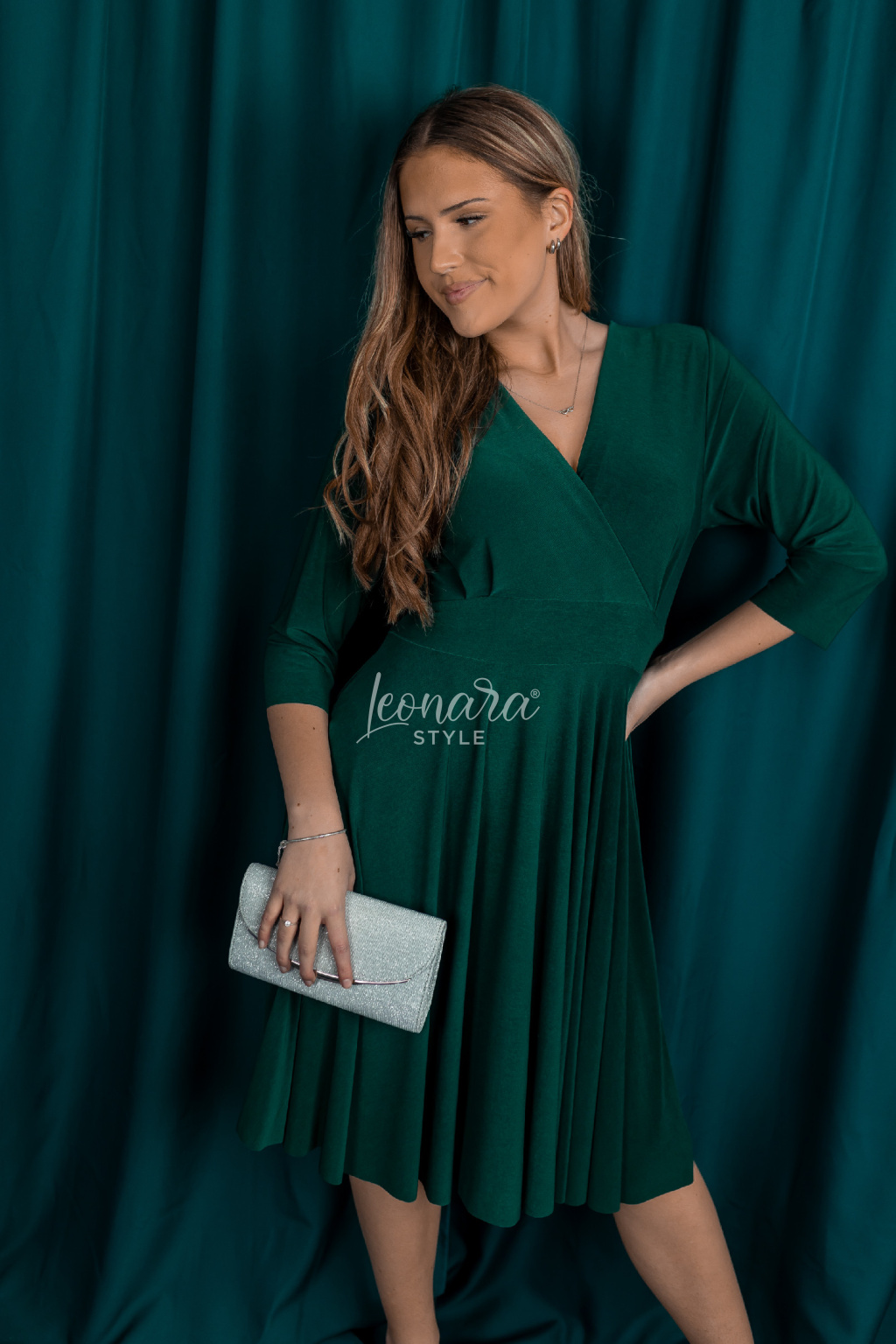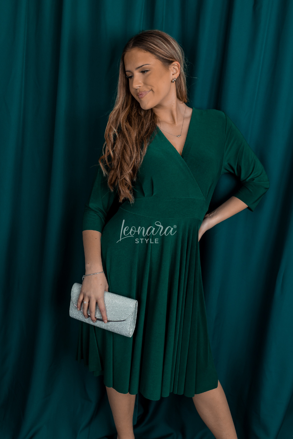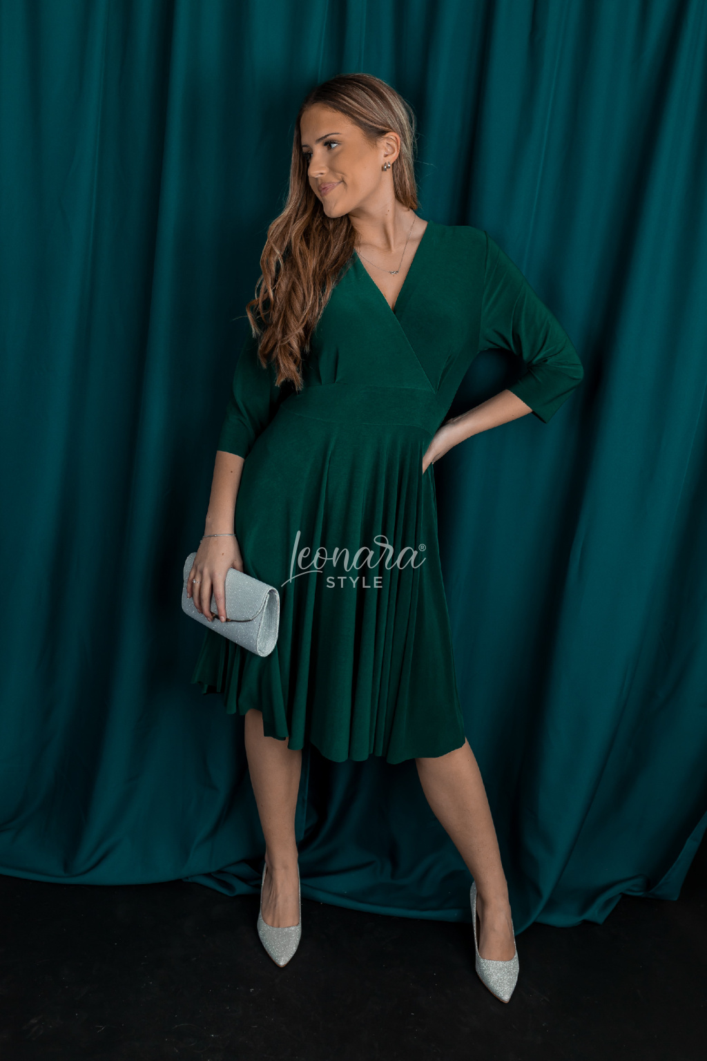 Tyto společenské elegantní šaty jsou vyrobené z velmi příjemného materiálu. Mají výstřih do V a v pase jsou v zadní části řešené žabkováním, díky kterému se dobře přizpůsobí postavě. Sukně má áčkový střih, který působí vzdušně a lichotivě. Vhodné i pro větší velikosti. Šaty jsou vhodné na společenské události, oslavy, večírky i slavnostnější příležitosti.